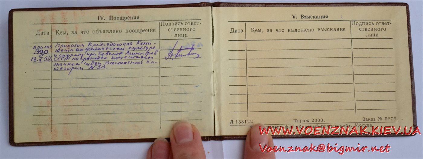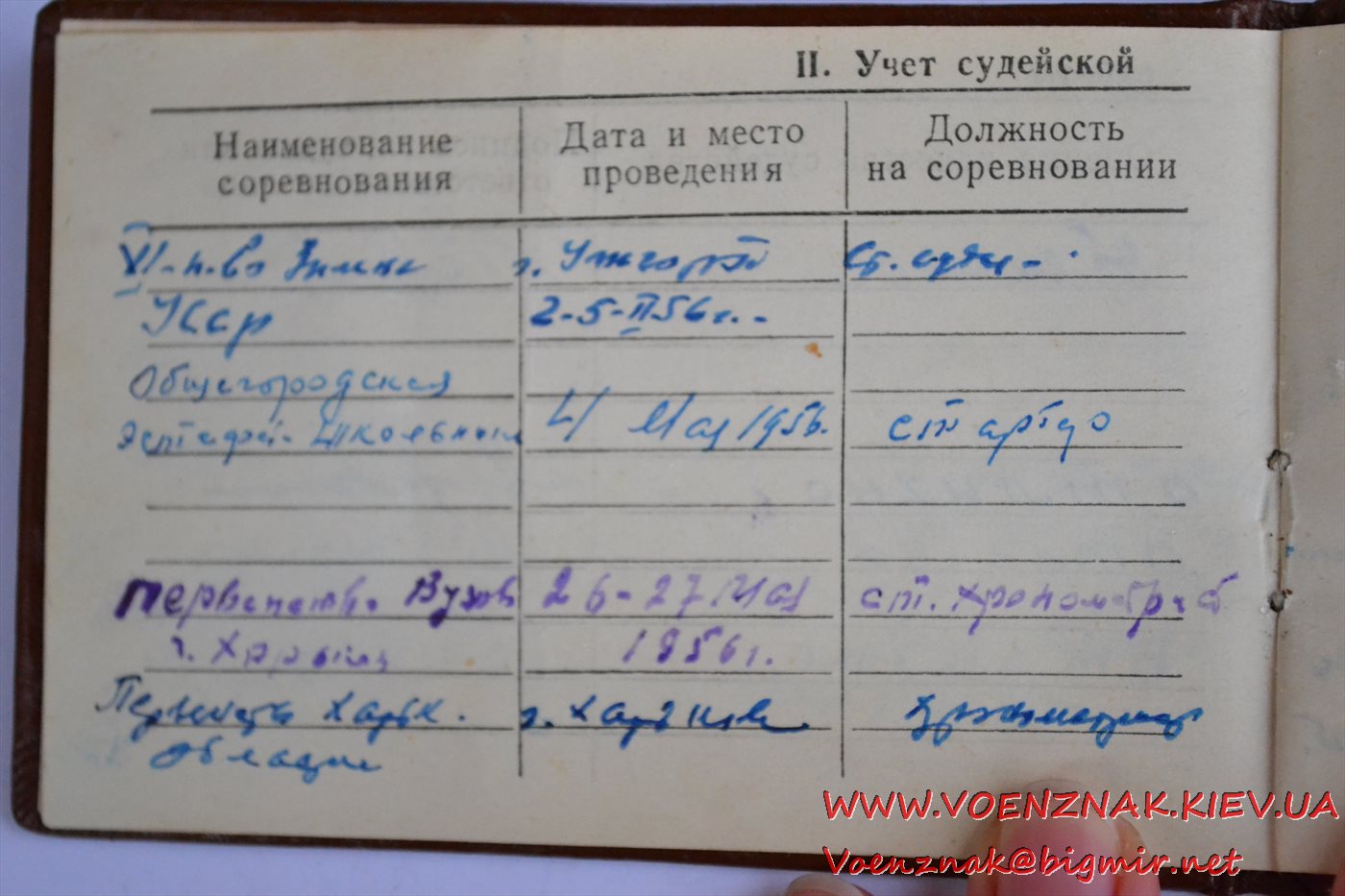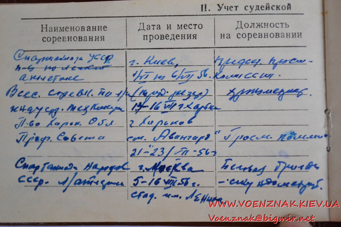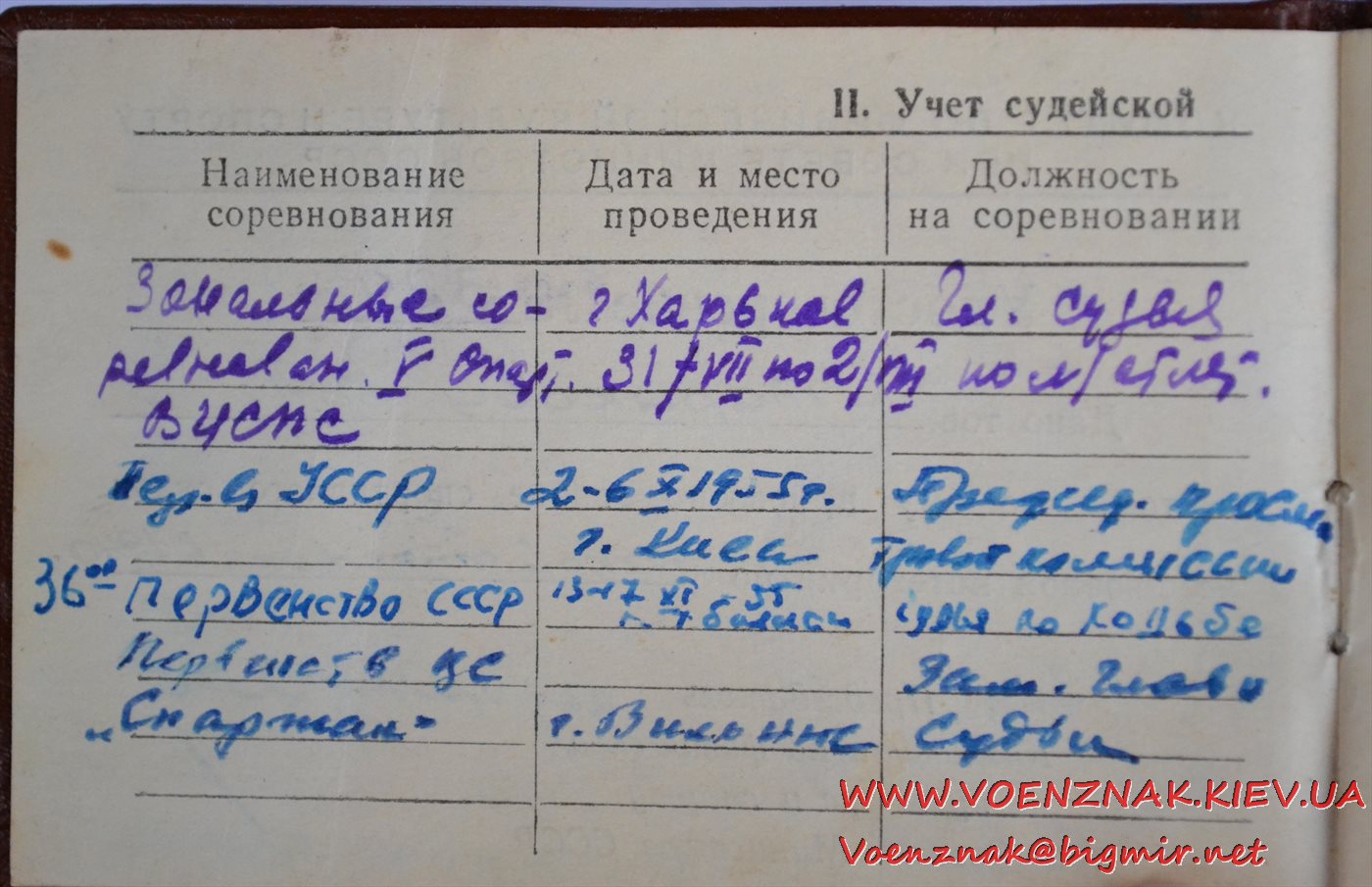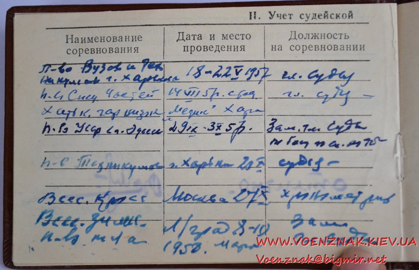 Удостоверение "Судья по спорту всесоюзной категории" (легкая атлетика). Записи судьи с 1955 по 1961 гг.