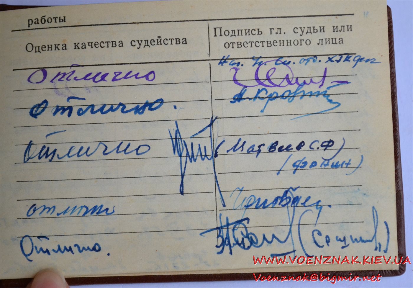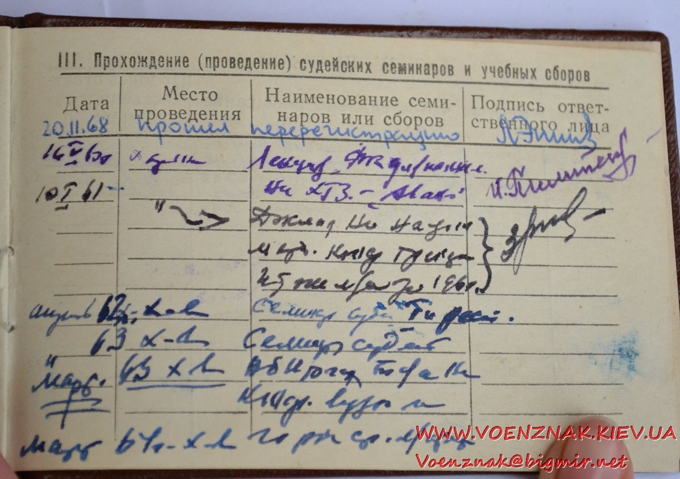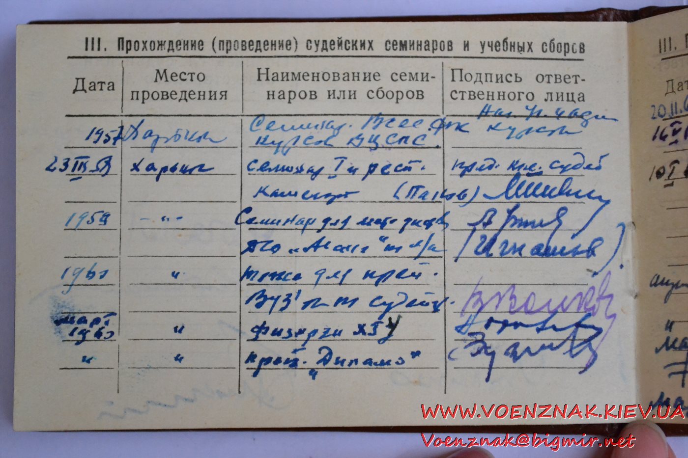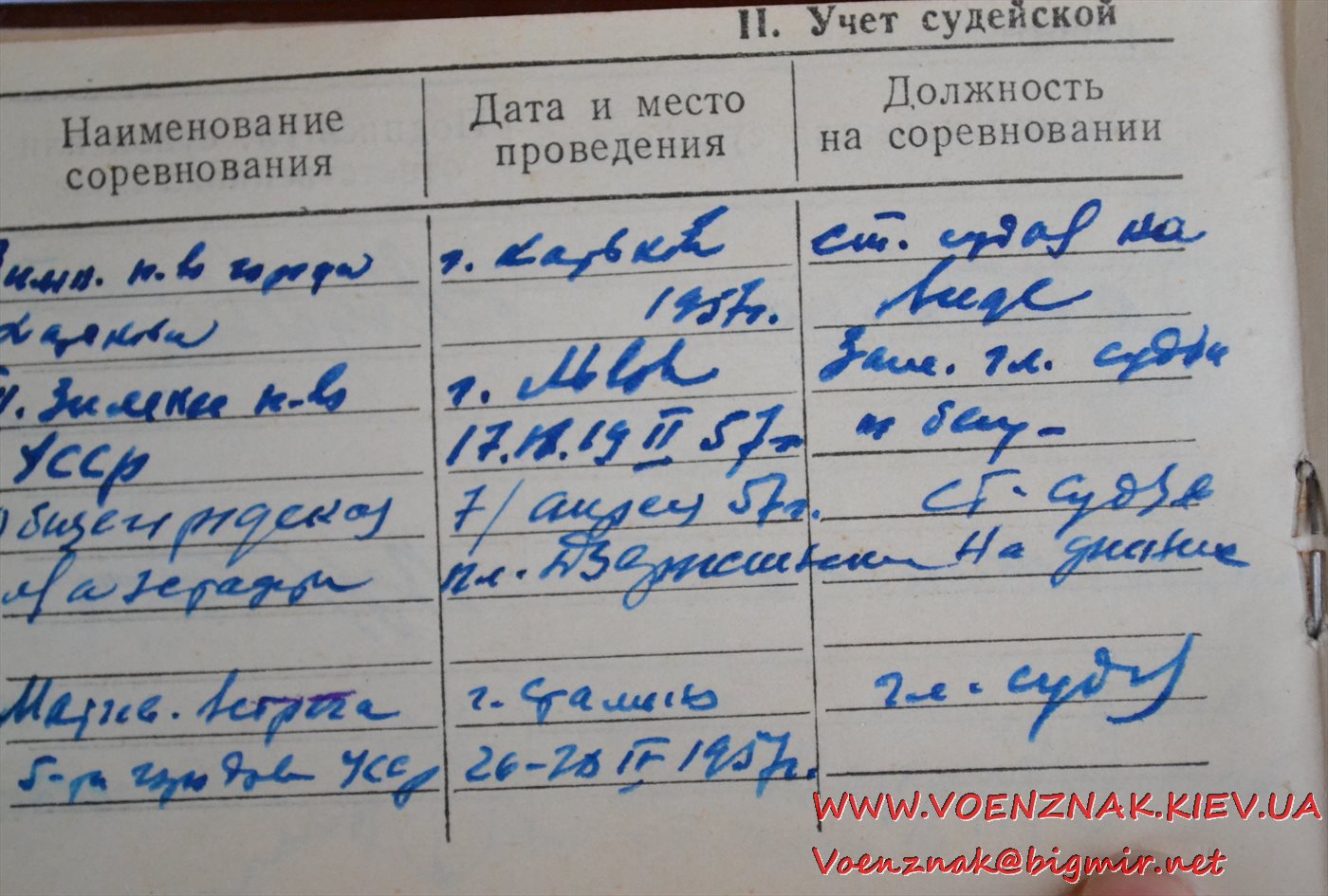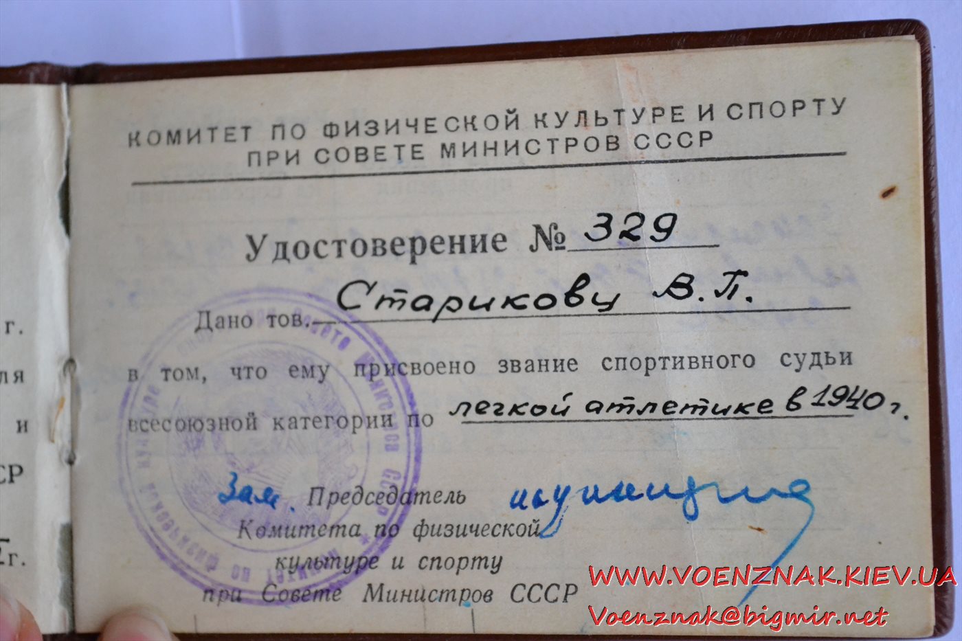 Удостоверение "Судья по спорту всесоюзной категории" (легкая атлетика). Записи судьи с 1955 по 1961 гг.