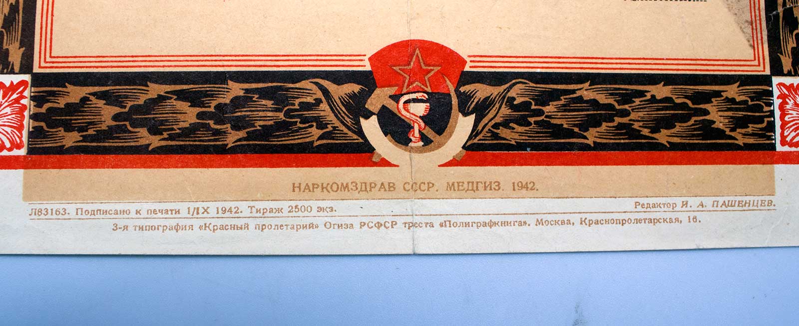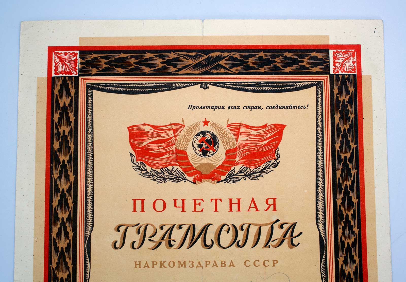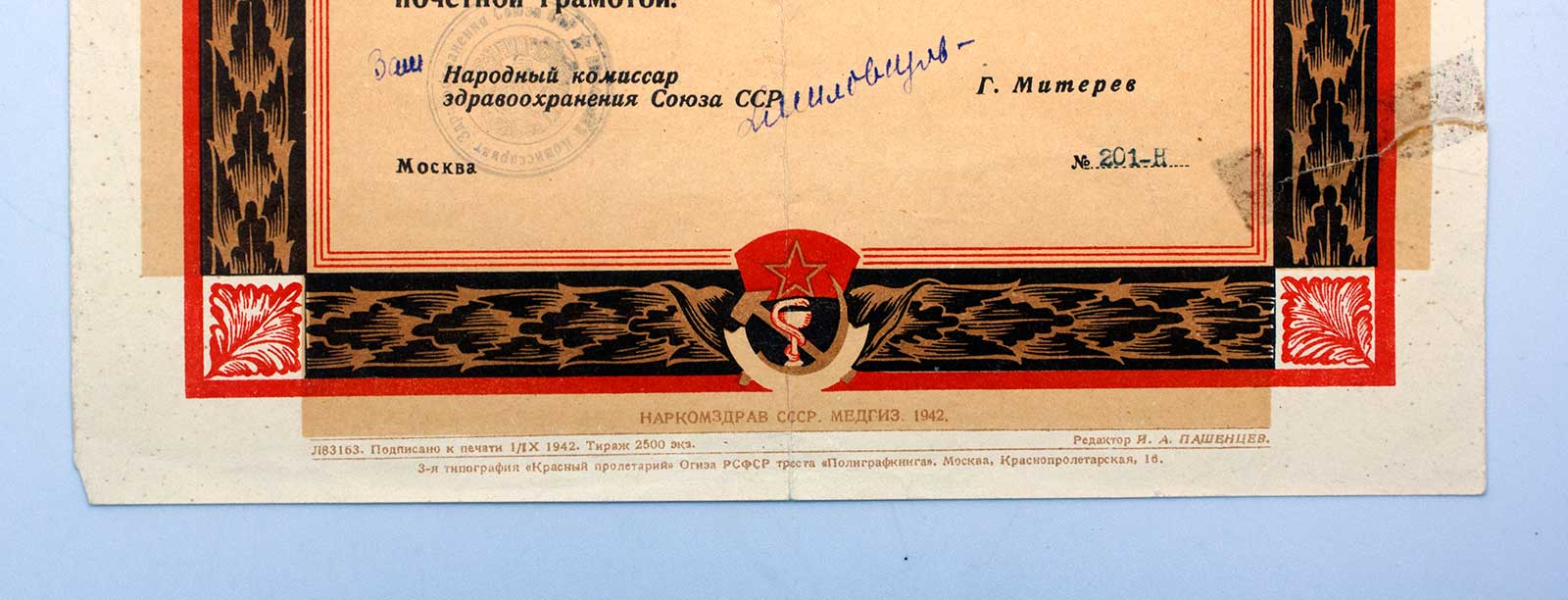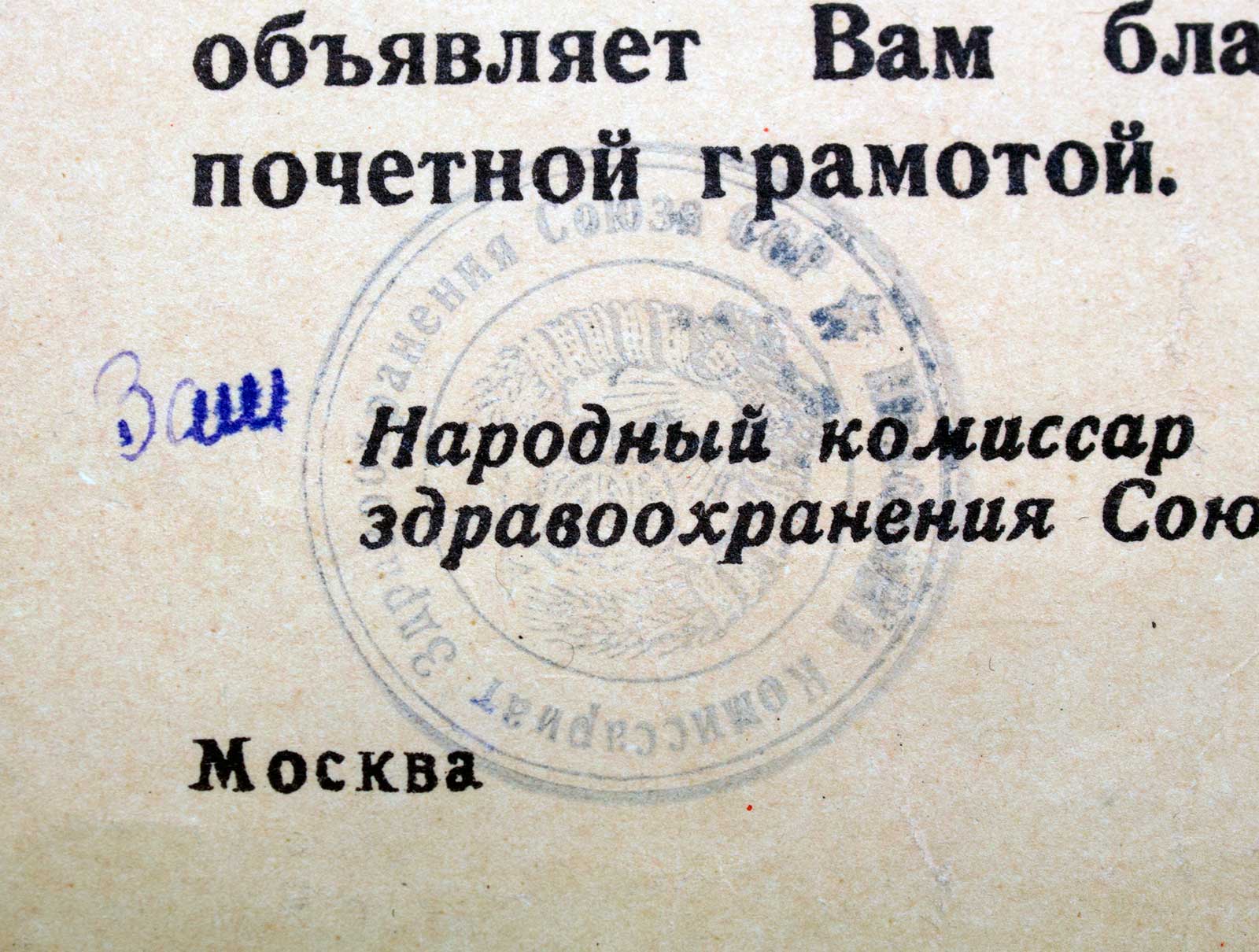 Грамота от НАРКОМЗДРАВА на эвакогоспиталь 1942г оч. КРАСИВАЯ