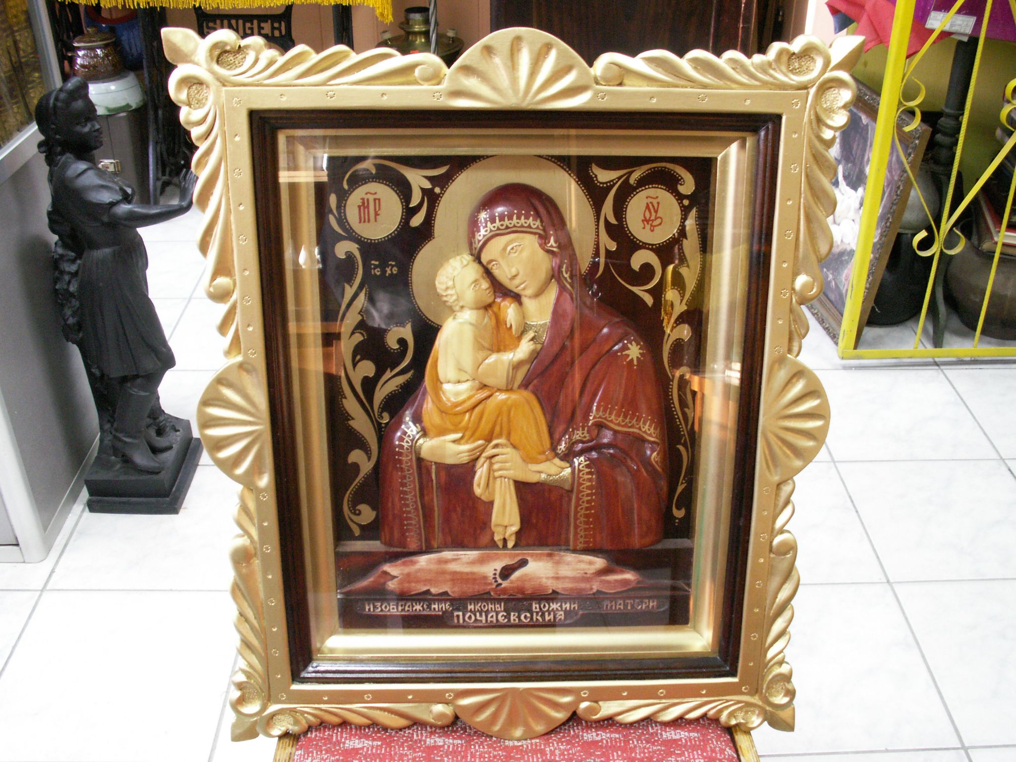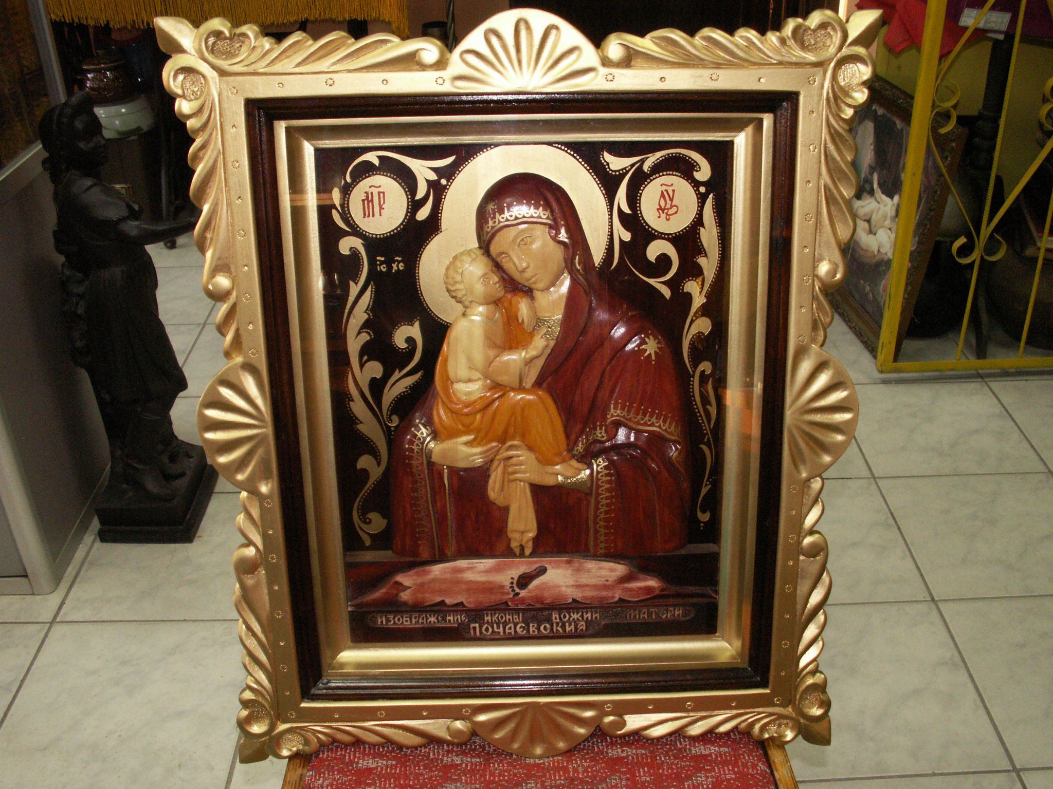 Богородица богоматерь почаевская объёмная резьба. 575х485х70 мм. (с узорами) МПЦ 9 т.р.