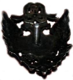 Знак в серебре. Накладка утеряна давно. Родная закрутка. Клейм нет. Оригинал. Размер знака приближен к размеру спичечного коробка.