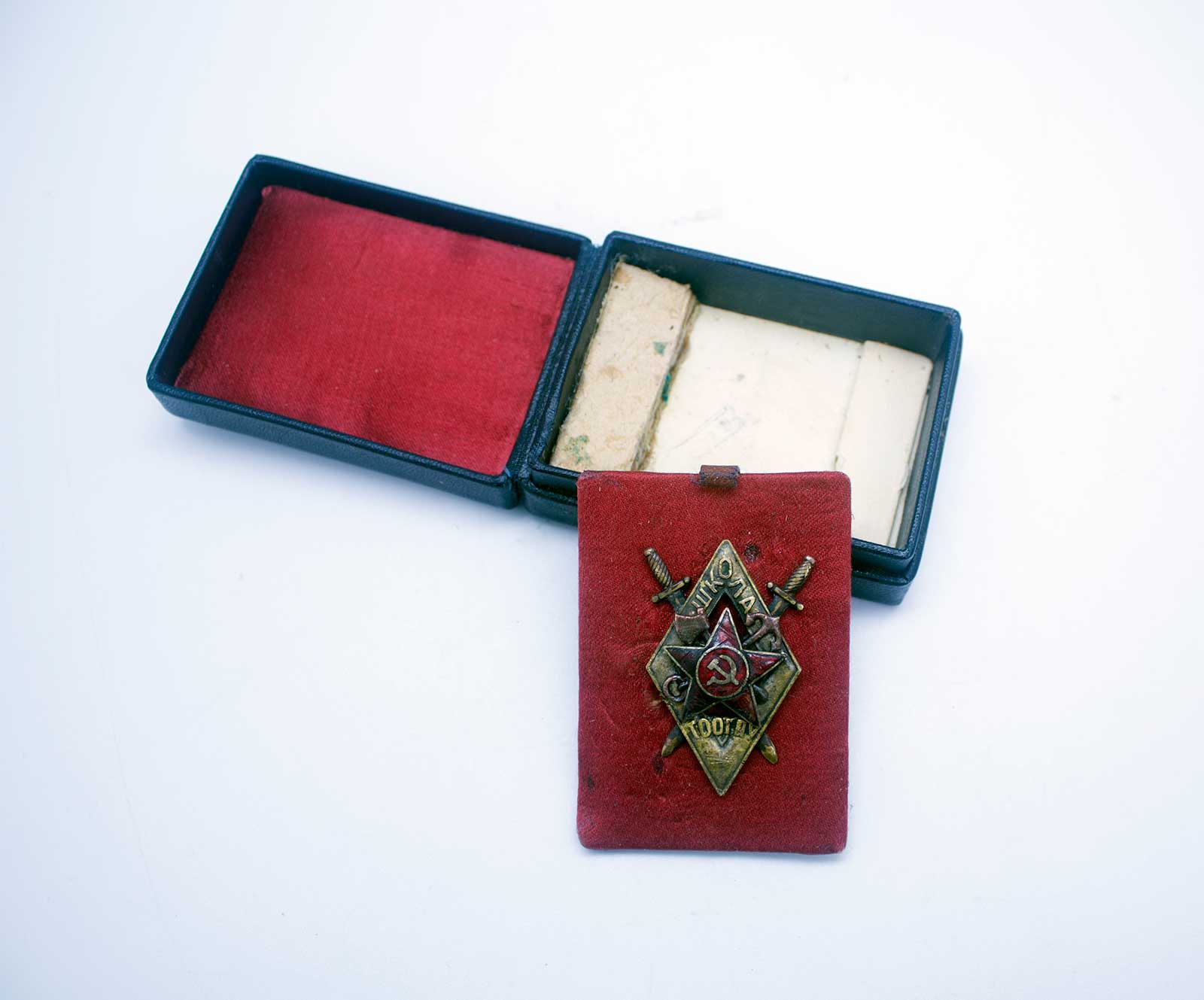 Потом принесли сам знак, потом коробочку!