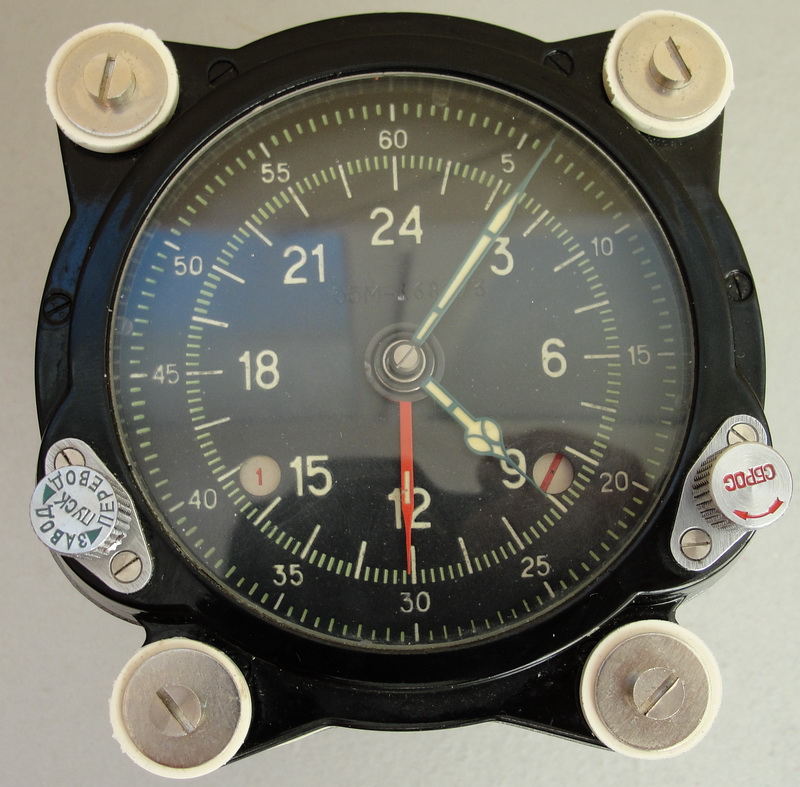 Часовой "блок 55М" предназначен для измерения текущего времени в часах и минутах и коммутации электрических цепей в соответствии с заданной временной программой в авиационной технике. Часы устанавливались на один из блоков системы опознавания "6201" (свой-чужой) и предназначались для автоматического переключения кодов опознавания самолётного радиолокационного запросчика-ответчика. Имеют встроенный блок переключателей и, в отличие от обычных часов, 24х-часовой циферблат, для исключения двойного срабатывания в сутки. Шкалы и стрелки покрыты светомассой ВРЕМЕННОГО(!) действия (к радиоактивности не имеет никакого отношения), которая обладает эффектом остаточного свечения в темноте после облучения обычным светом, или яркое свечение в темноте под действием ультрафиолетового облучения арматуры АРУФОШ, применяемой для подсветки приборов самолётных кабин. Красная стрелка предназначена для установки времени срабатывания контактной группы. Так-же происходит автоматическое срабатывание в 24.00. Система "6201" стояла на всех самолетах и вертолетах МО СССР(РФ). Скорее всего и сейчас стоит. Прибор выпускается Челябинским часовым заводом.
