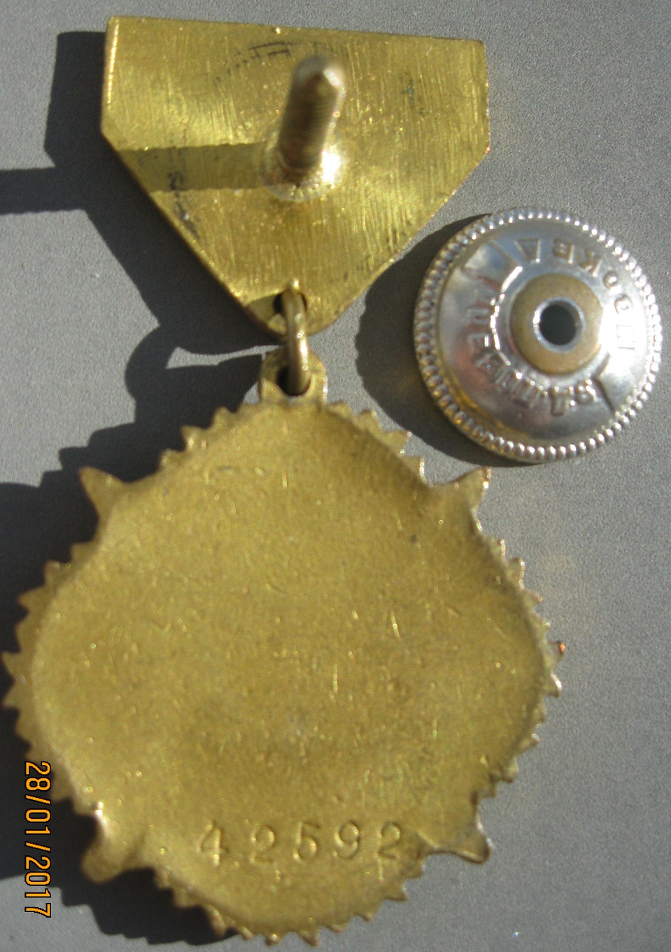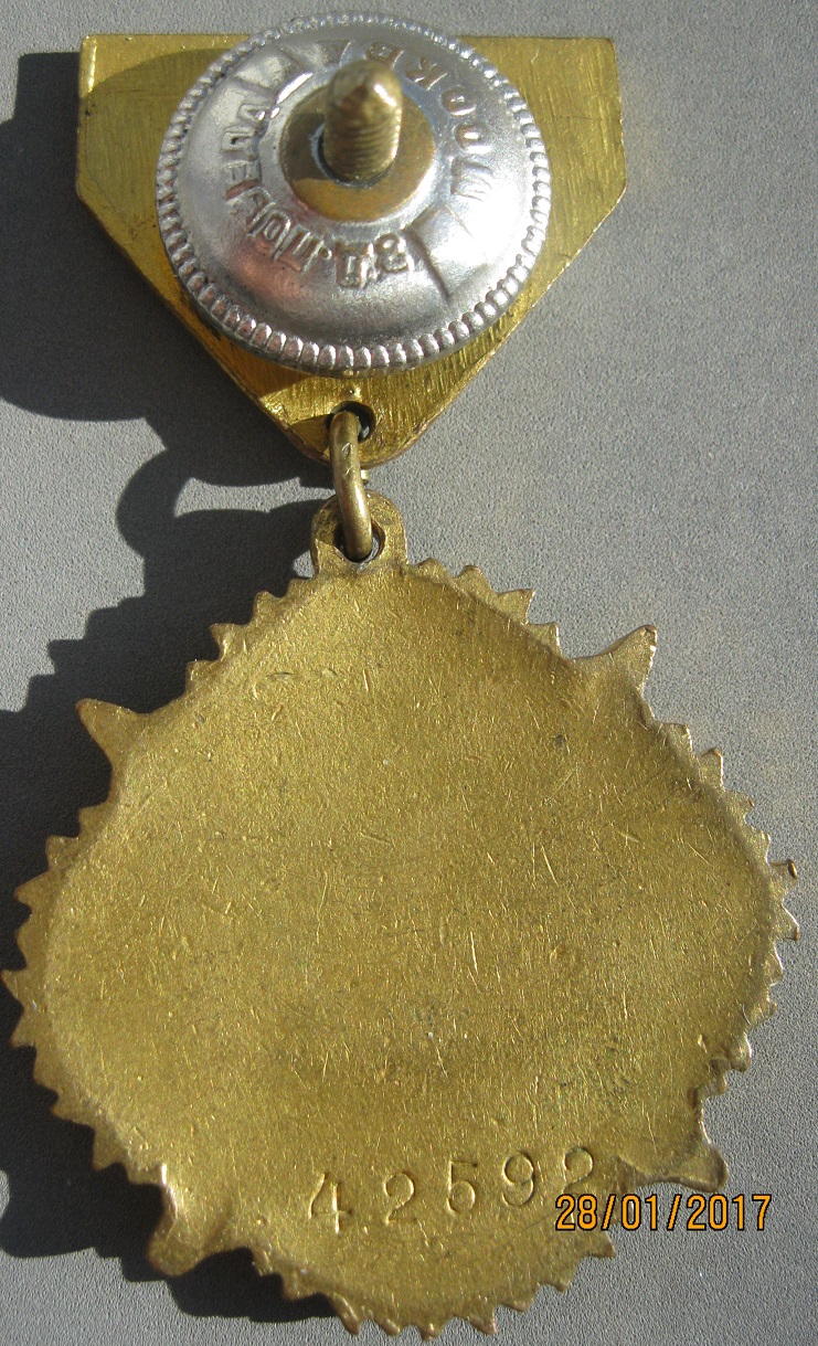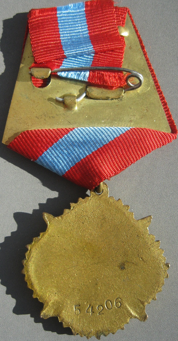 Итак: №54206 на пятиугольной колодке для награждения русских военнослужащих. Бронза, горячая эмаль. На эмали звезды есть выщербинки, видные только в увеличительное стекло. В натуральную величину "вживую" смотрится вполне солидно и достойно