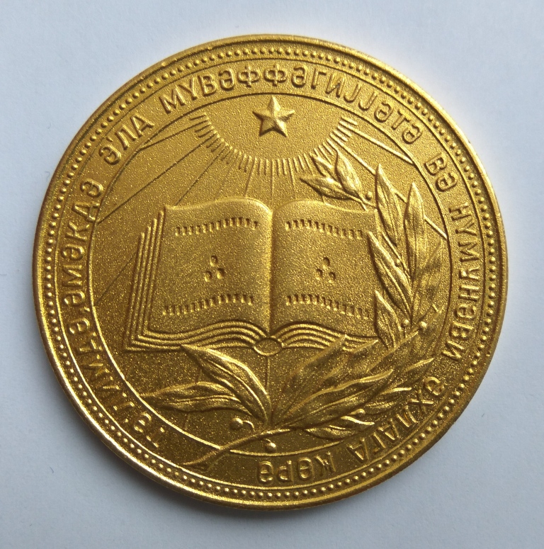 Золотая школьная медаль Азербайджанской ССР образца 1985 года.