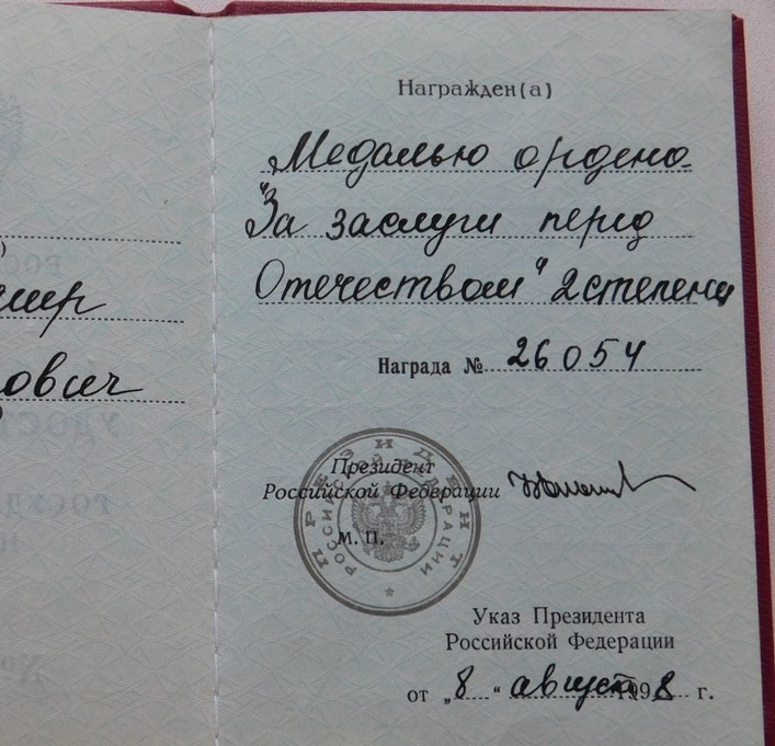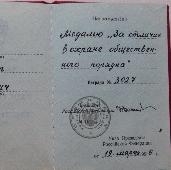 Указ за Чечню сотрудникам МВД № 396 от 09.03.1996года и № 251 от 04.03.1998г.