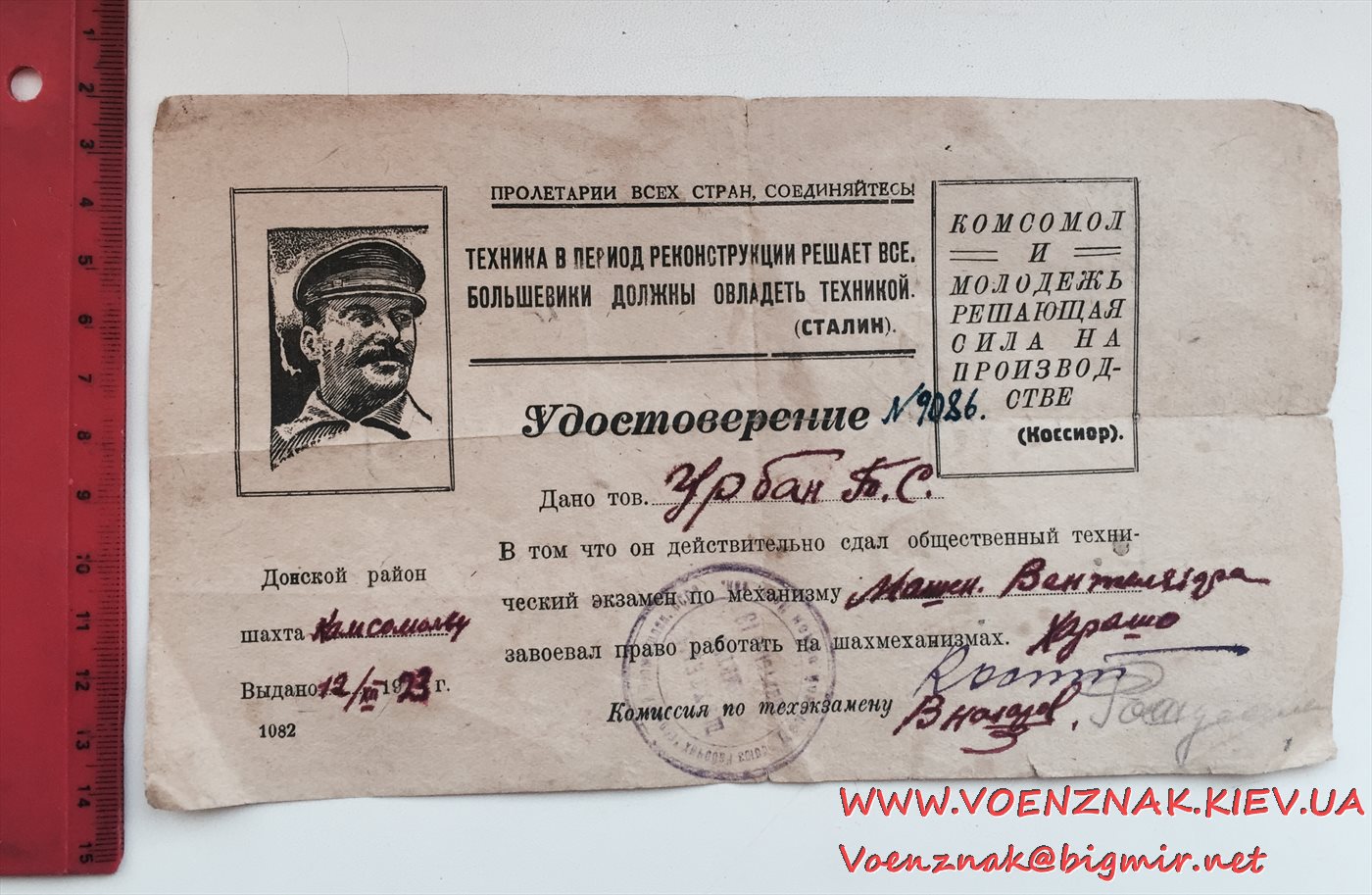 Удостоверение 1923 года. Отличное состояние,видны подписи и печать