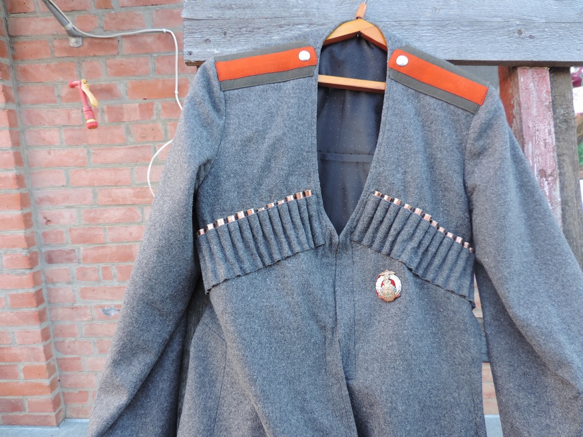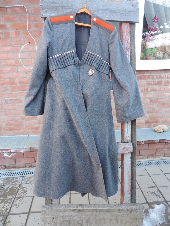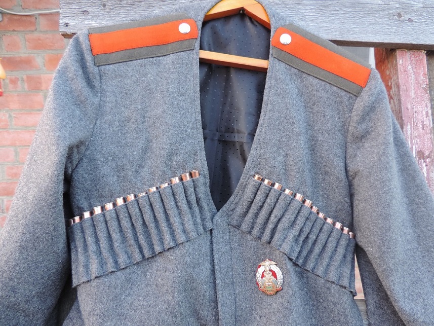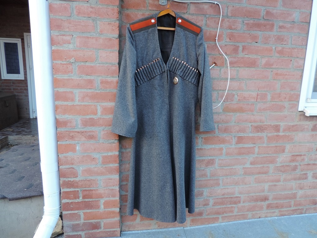 Новодельная черкеска ККВ или ТКВ пошитая по старым кройкам. Материал шерсть. Легка, мягкая. Погоны полевые на подхорунжего. Вырез на груди уставной-треугольником! Застегивается на крючки, через раз.