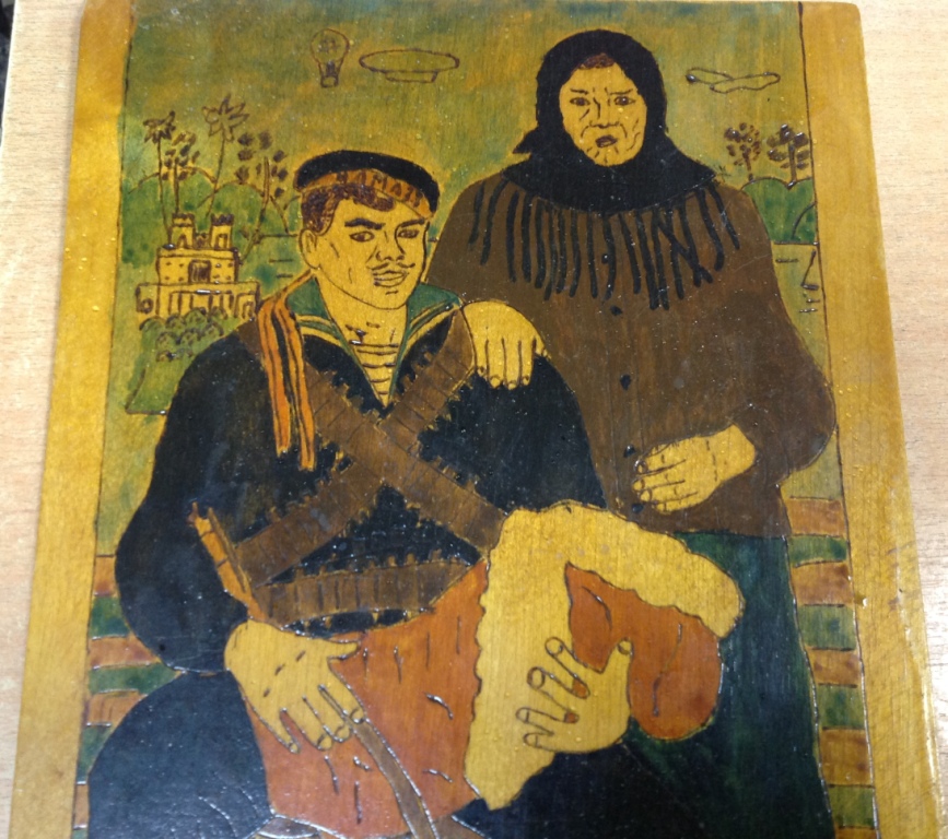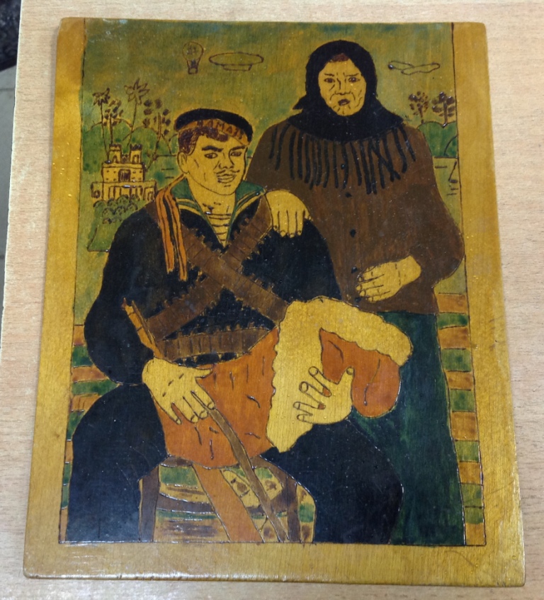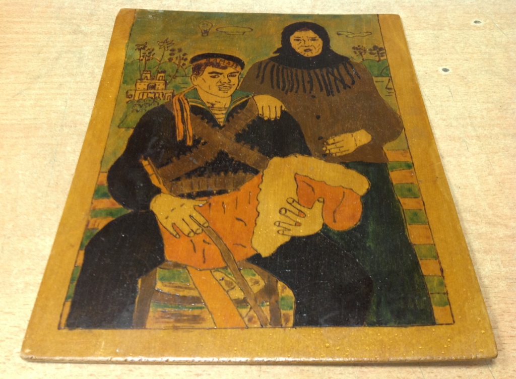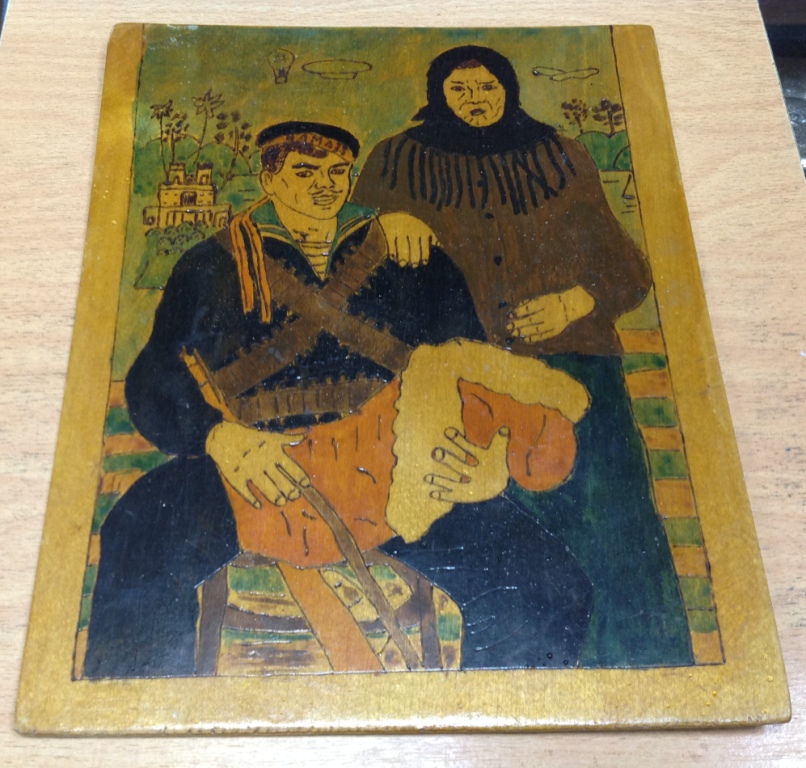 Размер 26,2см на 21 см. Старенький предмет.От населения.Похоже сделана прибором для выжигания...Покрыта лаком.Предложите за красоту