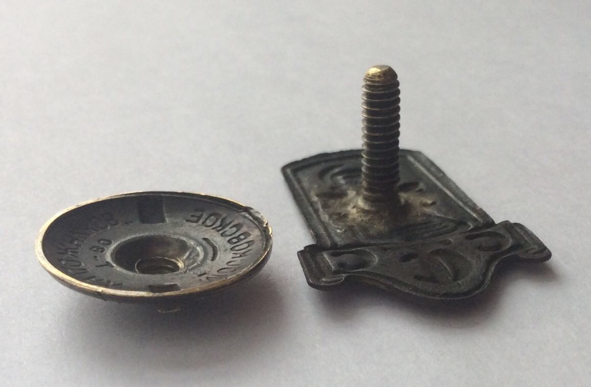 Эмаль переложена, гайка на винте незначительно шатается, но держит отлично на всей его длине, и накручивается вплотную к знаку.