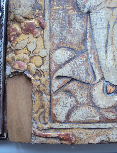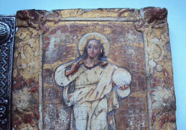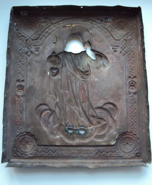 все перед вами. начало 19 в. материал. дерево. левкас, оклад латуный с по серебрением, венчик с позолотой. впервые попалась подобная икона. проходы таких икон не встречал. размеры. оклад... на ...