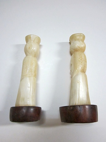 Здравствуйте, уважаемые форумчане! Продам мелкую пластику в колличестве 2 экземпляров. Материал - рог. Время - начало 20 века. Высота с подставкой - 15 см. Без подставки - 12, 5 см. Вес обеих изделий - 200 гр. Состояние видно по фотографиям.