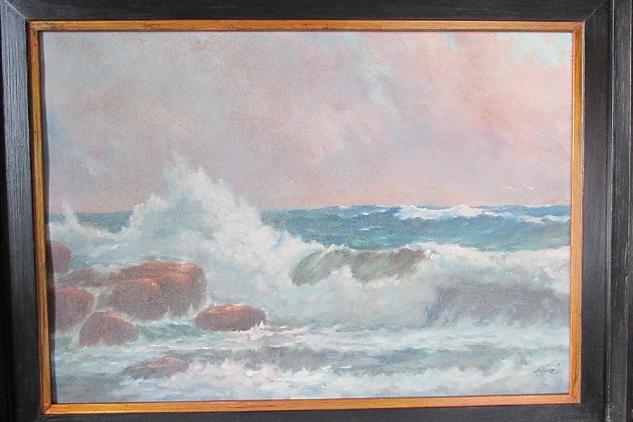 Здравствуйте, уважаемые форумчане! Продам картину "Морской пейзаж". Страна - Чехия. Подпись и фамилия автора видна в правом нижнем углу работы. Время написания - 1950-тые годы. Материалы - картон, масло. Размер с рамой - 52х69 см. Размер без рамы - 41х58 см. Состояние видно по фотографиям.