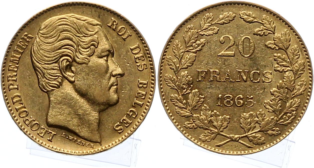 Бельгия 20 франков 1865 год Леопольд Премьер