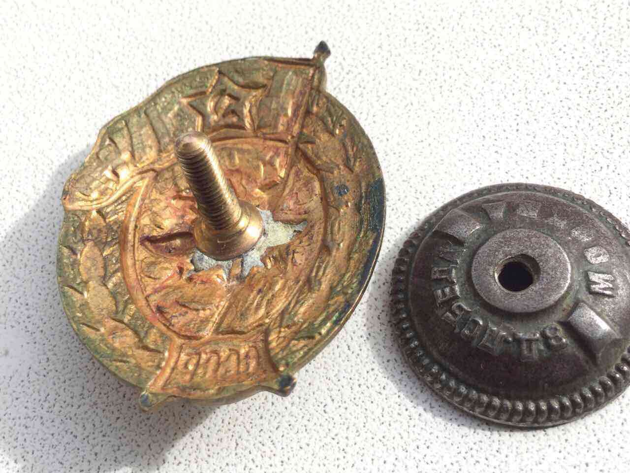 Справа на красном флаге пару трещинок,на белой эмали присутствуют чешуйки,винт и резьба в норме,в РФ +5$,предложите в долларах.