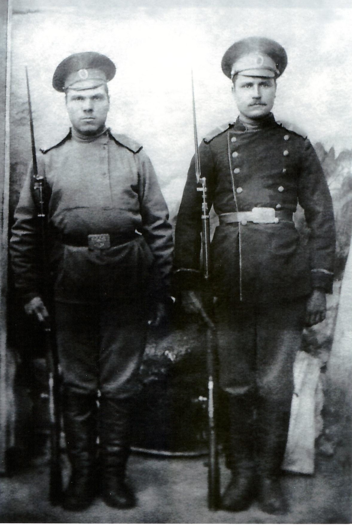 У прабабушки на чердаке нашлась пыльная фотография удивительного возраста: в моем семейном архиве она теперь — самая старая. Спросить уже не у кого, а сам я абсолютно некомпетентен в военной униформе и атрибутике того времени. Хотелось бы почерпнуть максимально возможную информацию из этой неожиданной для меня находки. Справа — мой прапрадед. Заранее спасибо за помощь.
