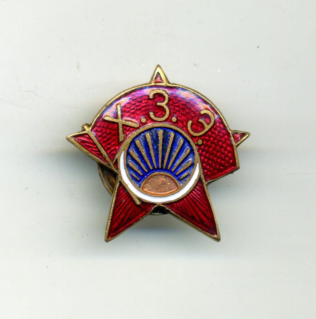 Под солнцем, где сходятся нижние лучи, заметен небольшой удар по гурту. Там щербинки и внутренняя трещина эмали, являющаяся как бы продолжением древка