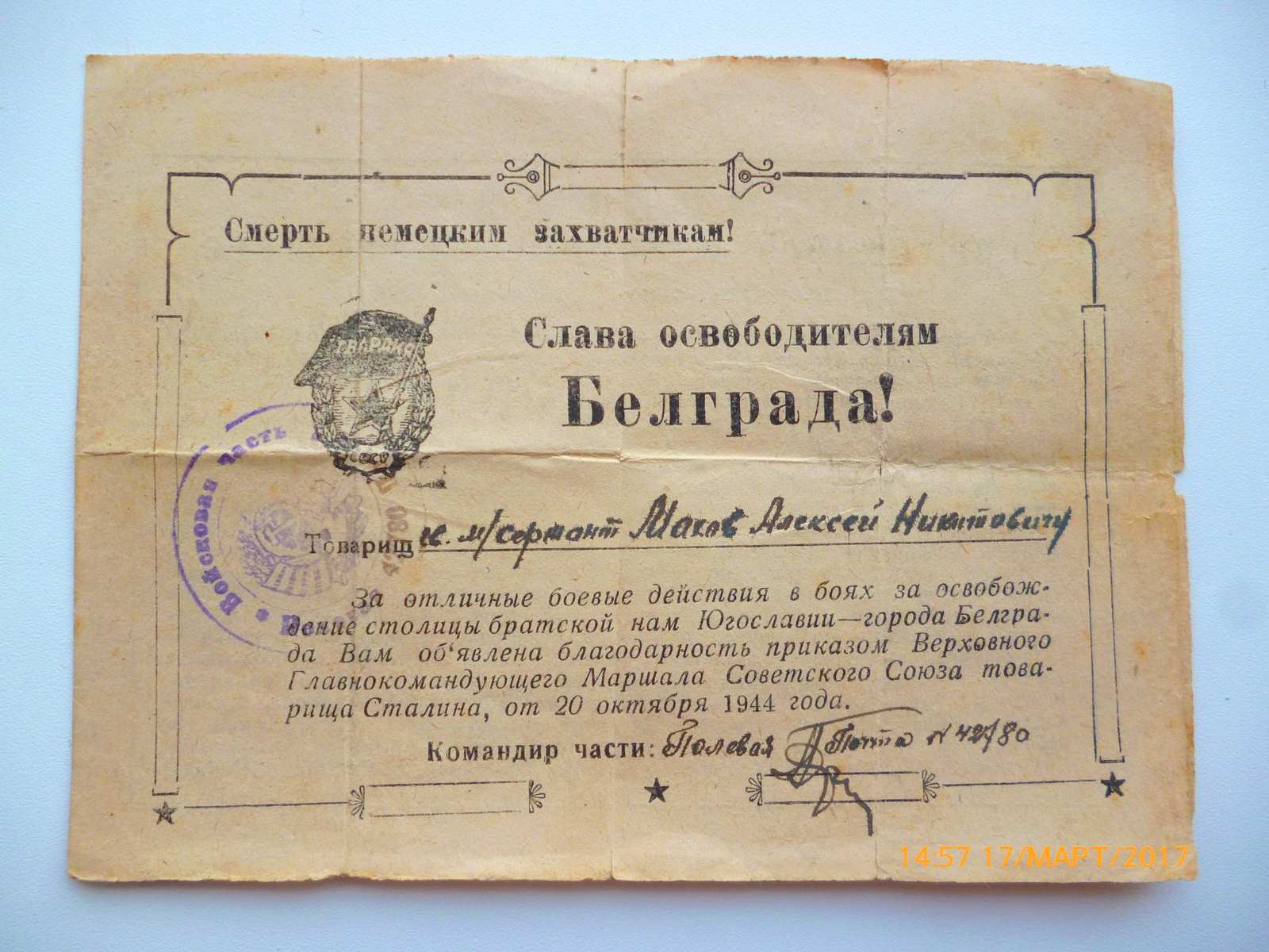 Благодарность за Белград!!! vov69 - 18 мар 2017 17:24.19 × Мини профиль пользователя vov69 Сообщения: 818 Зарегистрирован: 26 мар 2009 23:05.26 Статус: Не в сети - 18 мар 2017 17:24.19 #5950109 300 Дорого куплю КЗ 1822982 и КЗ 3134586Ищу ОЛ №353708