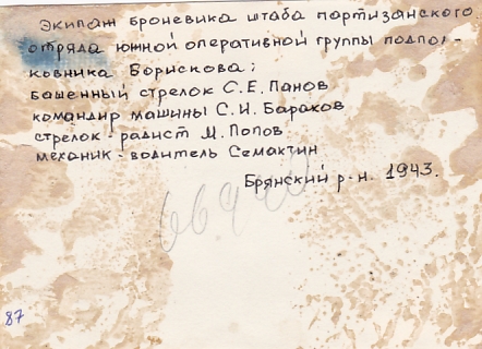 Экипаж броневика штаба партизанского отряда южной оперативной группы подполковника Борискова: