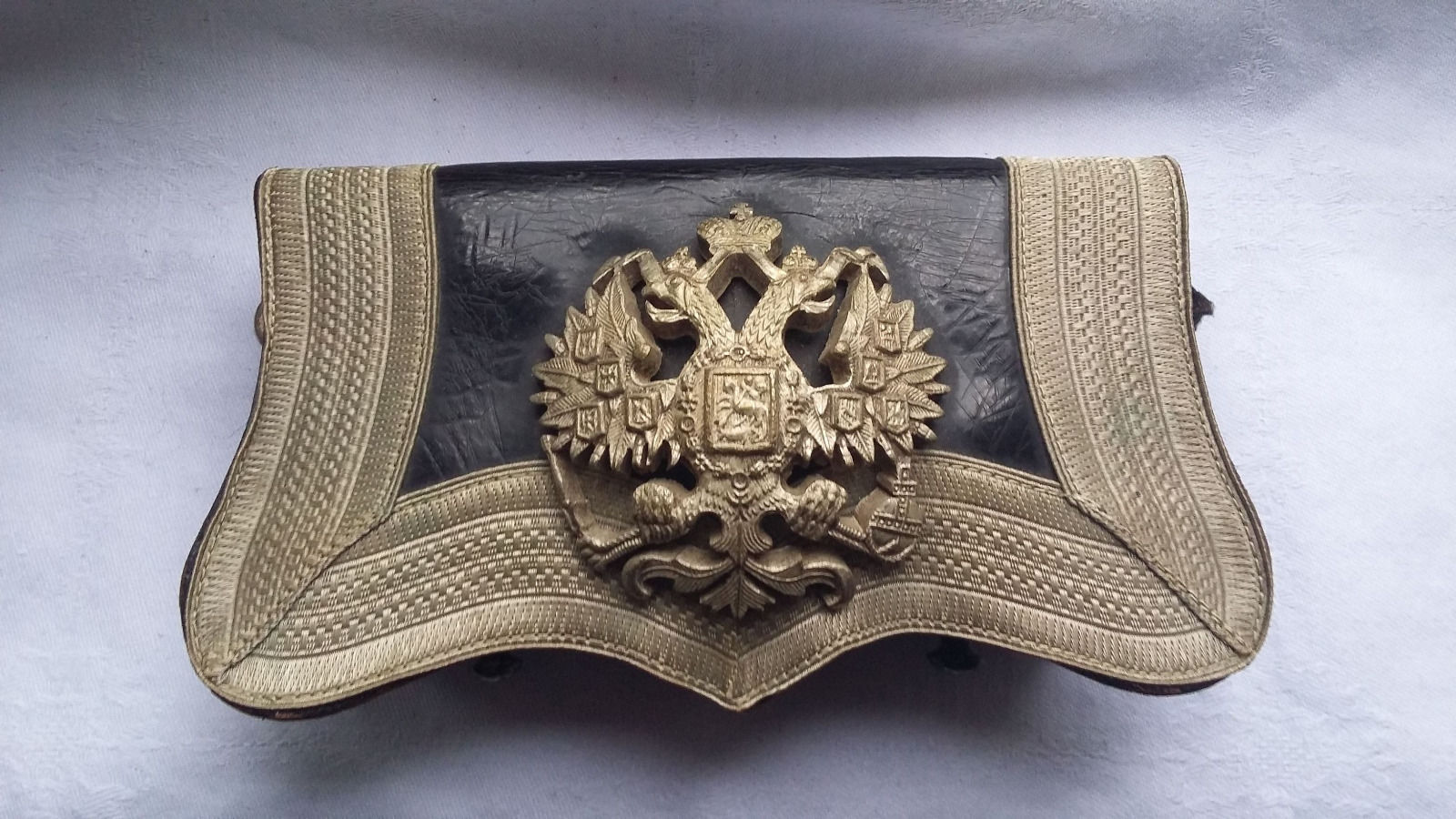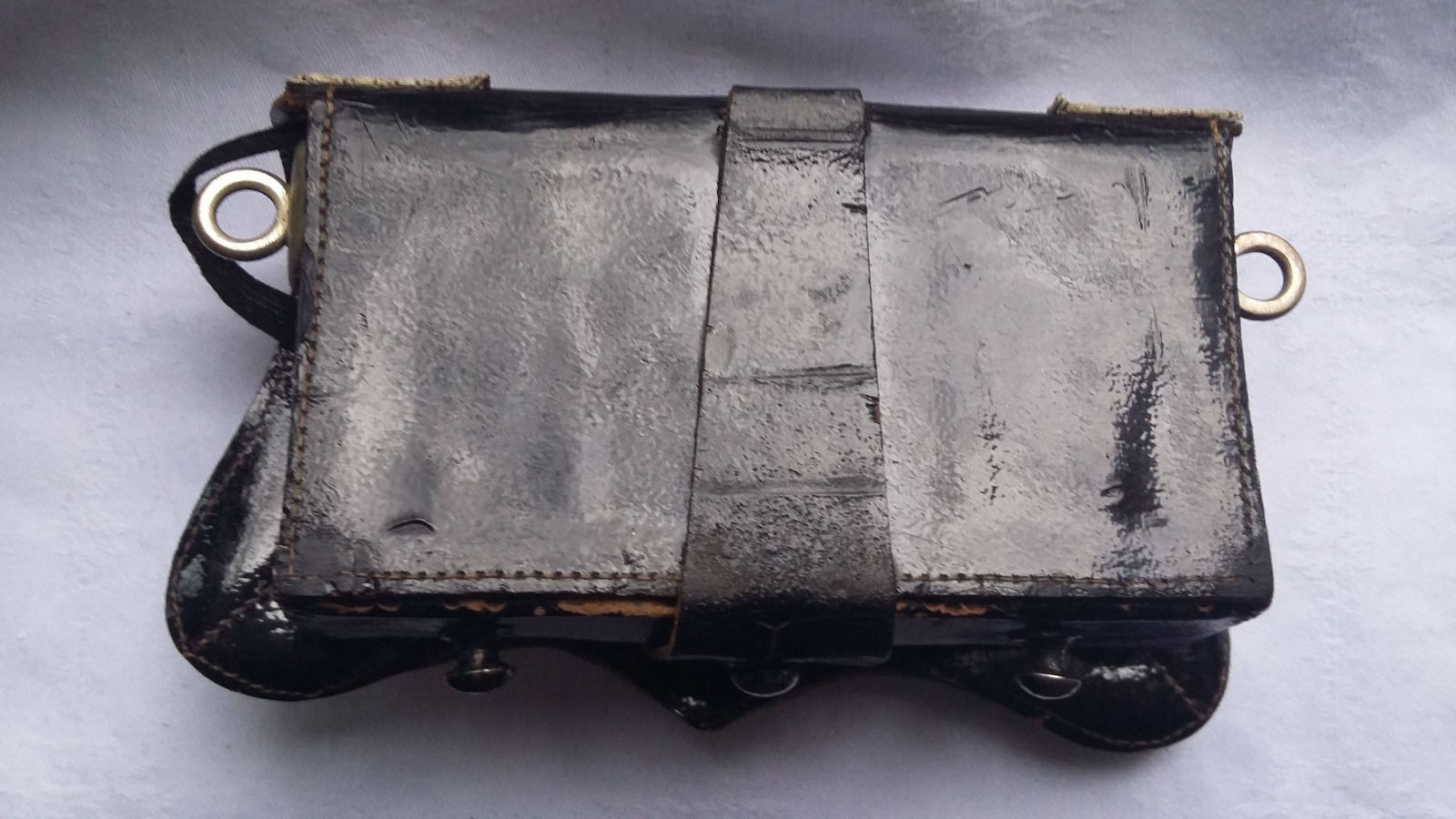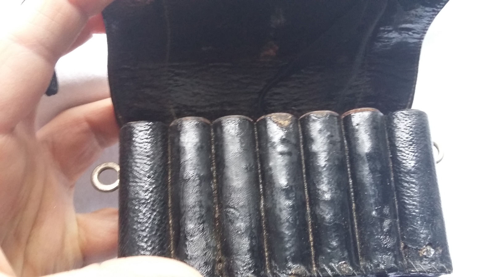 Образец 1889 года, но крепления сделаны так, чтобы можно было носить его как на новой перевязи (с крюками на концах), так и на перевязи старого образца (на застежках). Под патроны Смит-и-Вессон. Состояние люкс. Просьба не делать смешных предложений.
