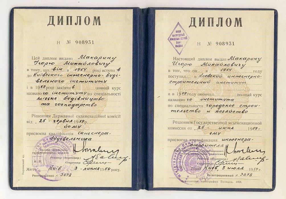 Еще несколько документов на Макарина И.М, которые показывают его возраст, образование и звания