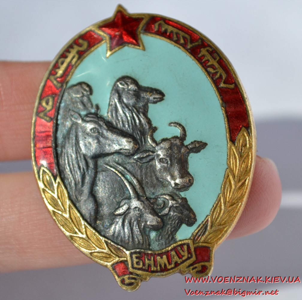 Знак "Отличный пастух" № 2544. Республика Тыва. Бронза, эмаль, винт. 1930е гг.
