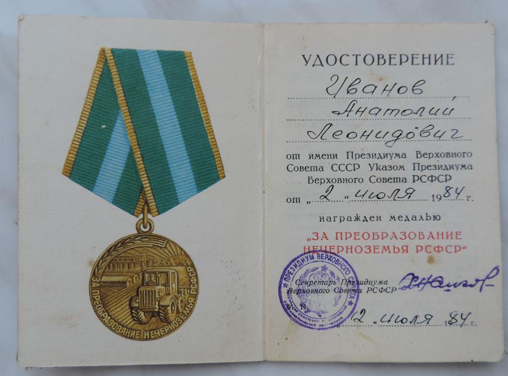 Медали Серп и Молот, За Трудовую Доблесть, За Трудовое Отличие, За Доблестный Труд в Великой Отечественной Войне,За Восстановление Предприятий Чёрной Металлургии Юга, За Восстановление Угольных Шахт Донбасса, За Освоение Целинных Земель, За Строительство БАМ, За Преобразование Нечерноземья РСФСР, За Освоение Недр и Развитие Нефтегазового Комплекса Западной Сибири, Ветеран Труда