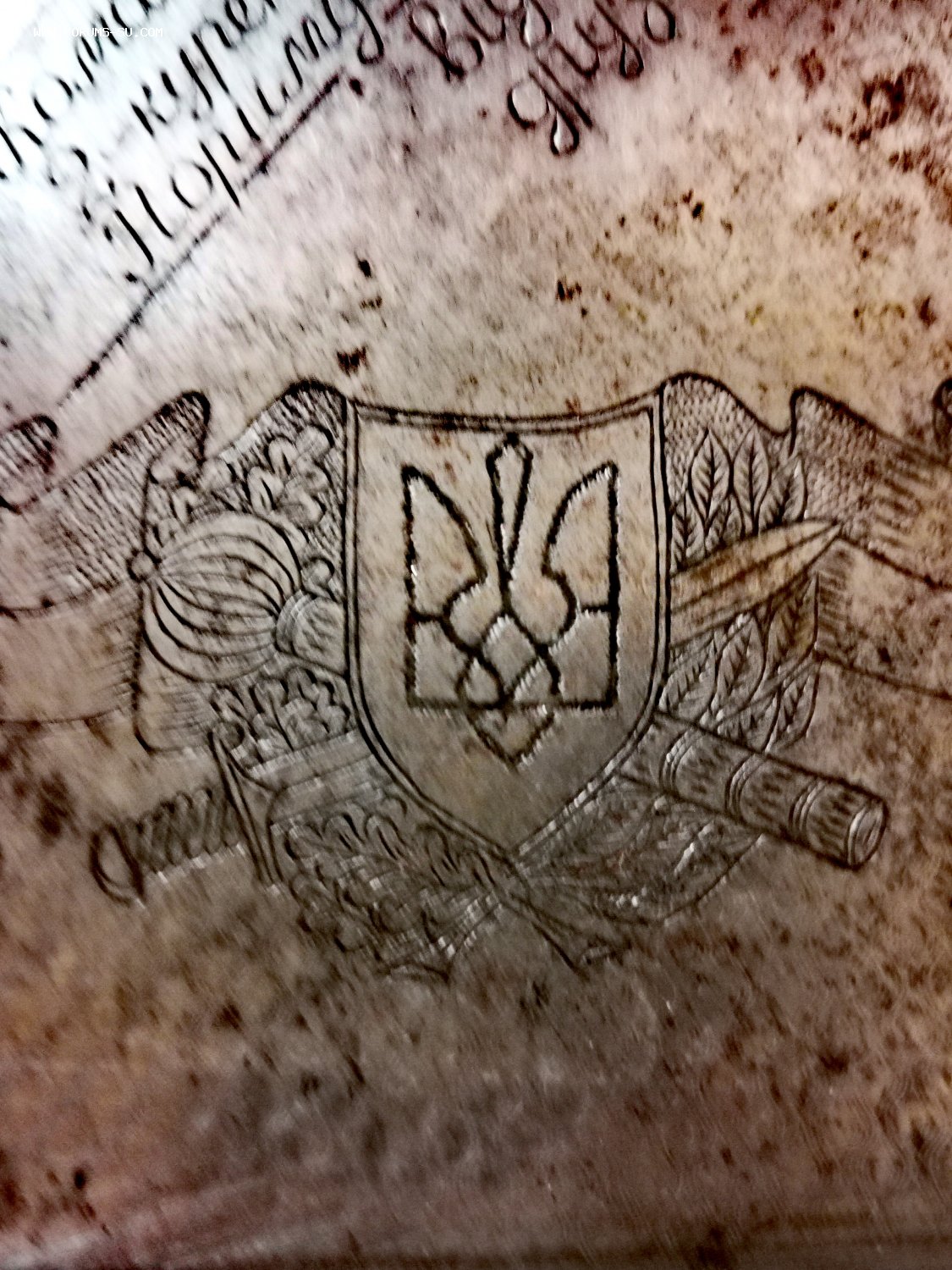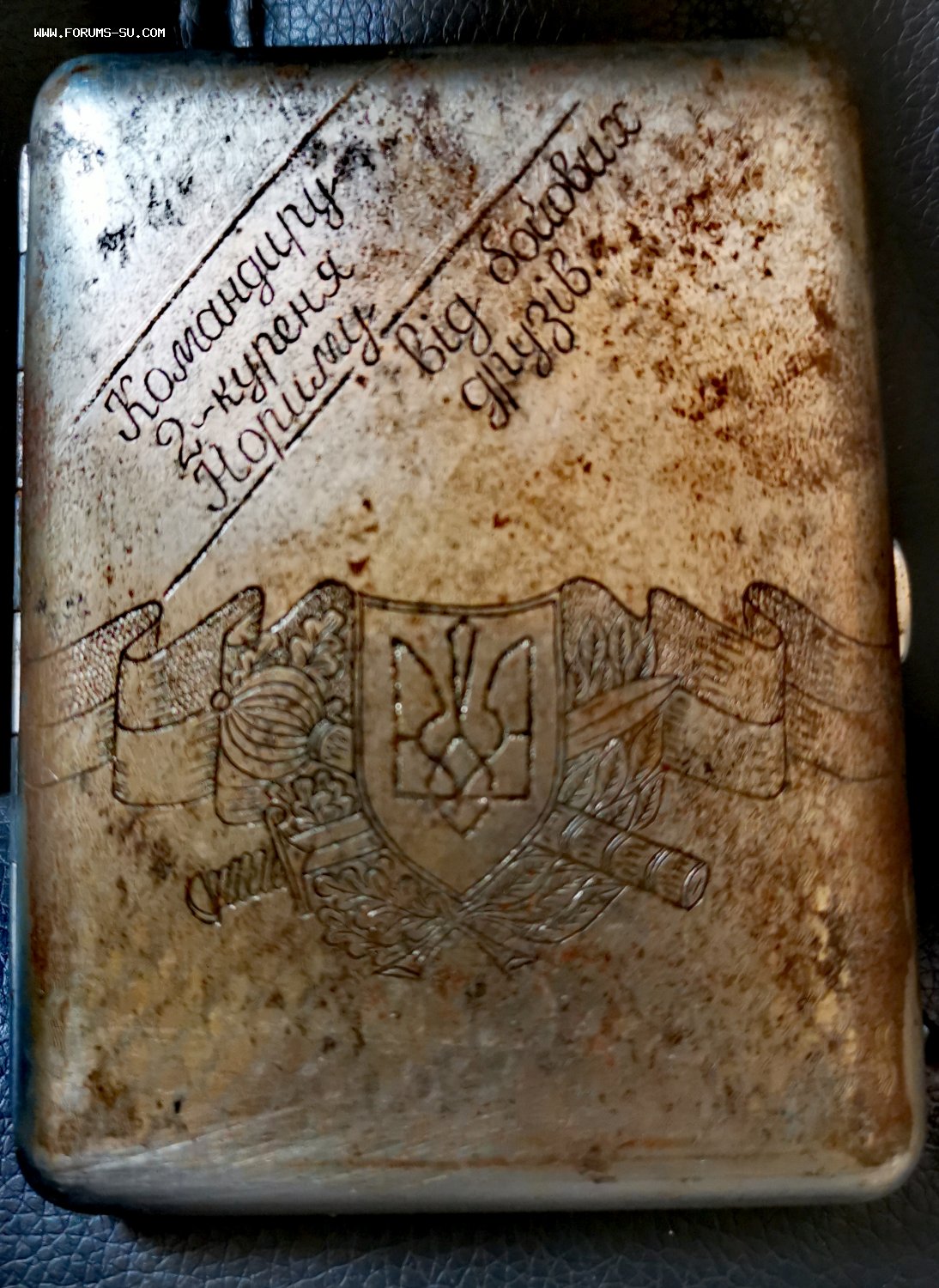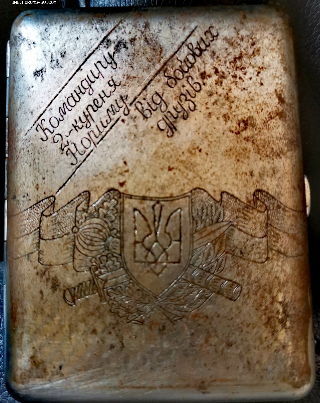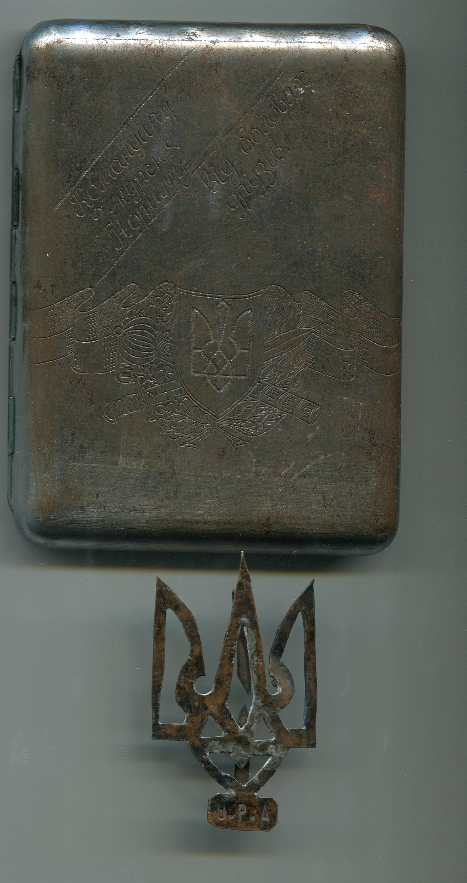 Надпись на портсигаре "Командиру 2-го Куреня Нозиму от боевых друзей"