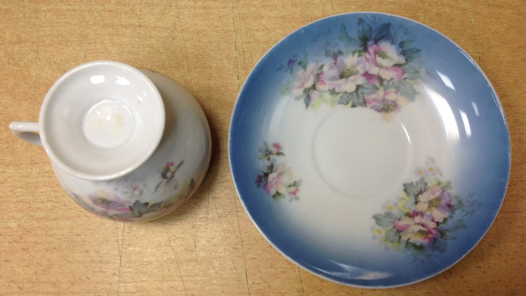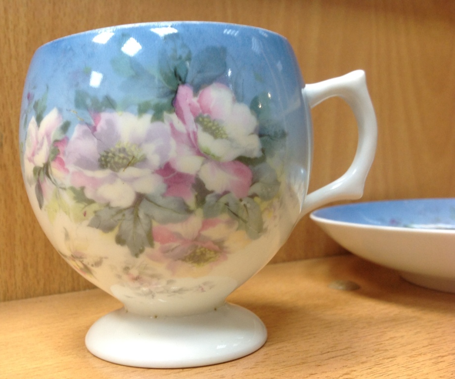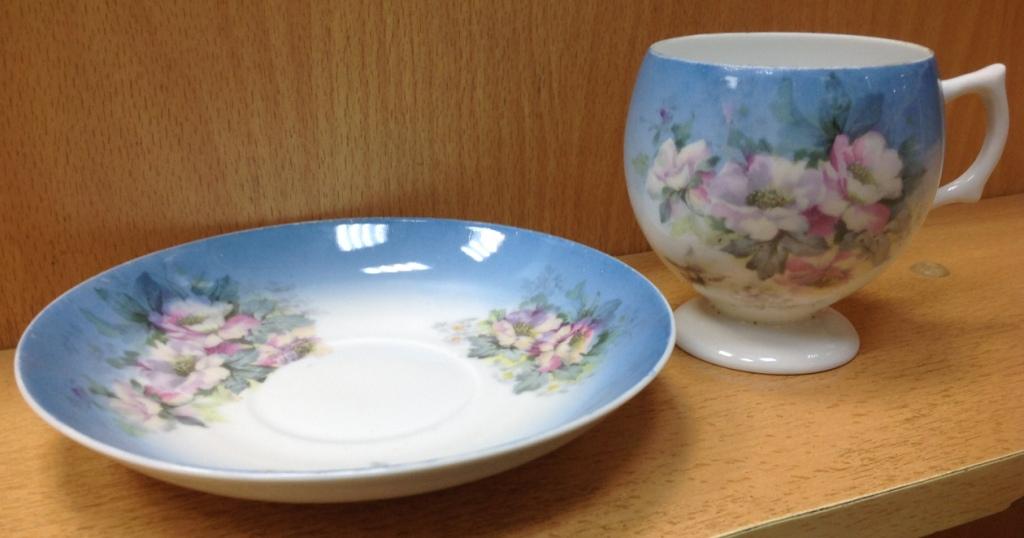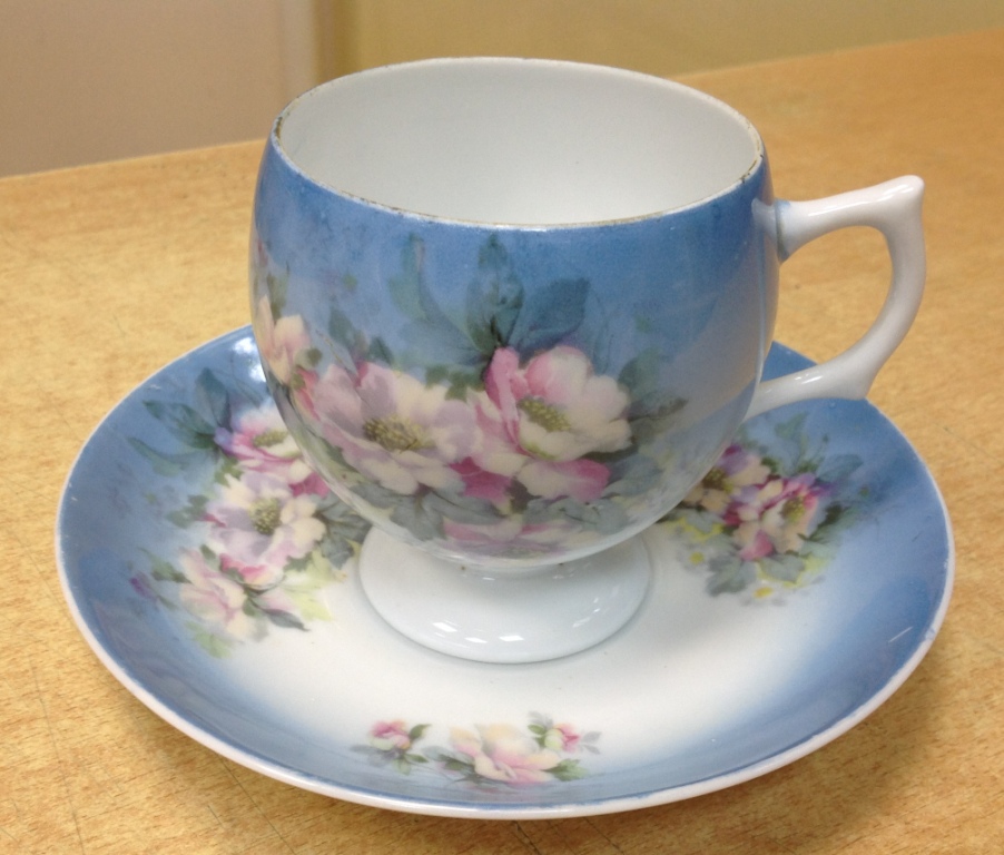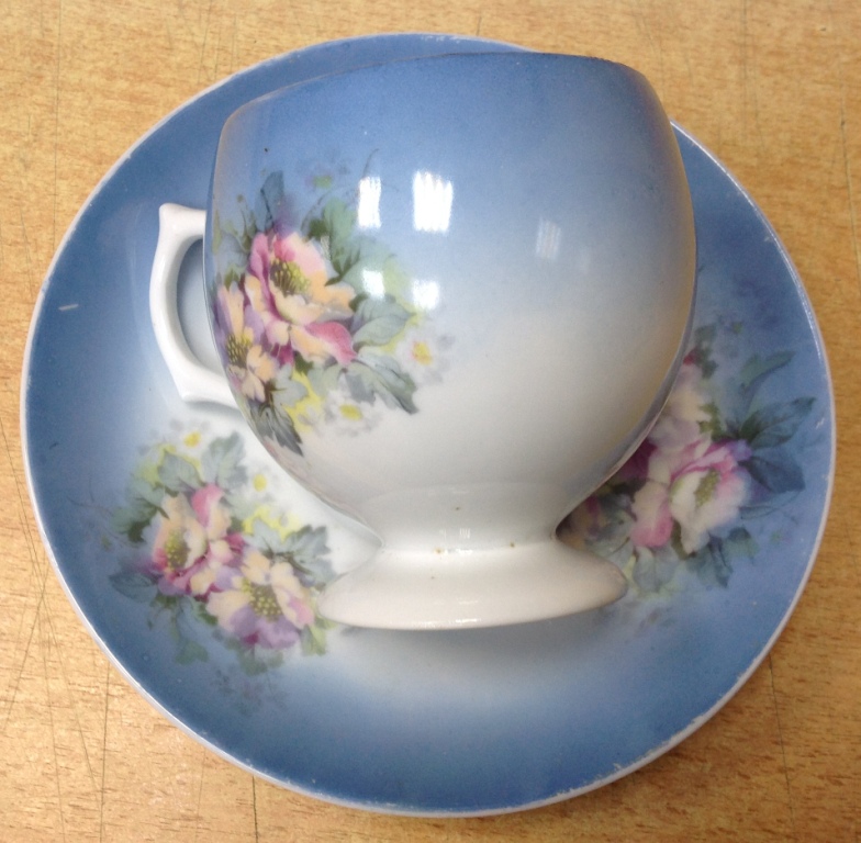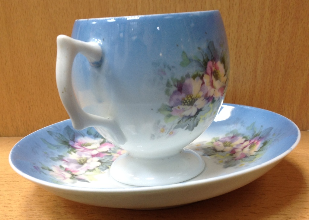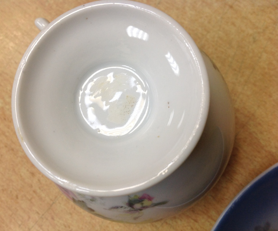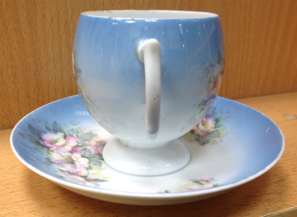 Целая -без дефектов. Высота кружки 9 см. Диаметр блюдца 16 см. Клейма на кружке видимо удалили...Спецы подсказывают возможно Корниловыхъ...Предложите по РФ!