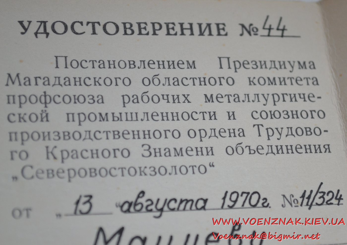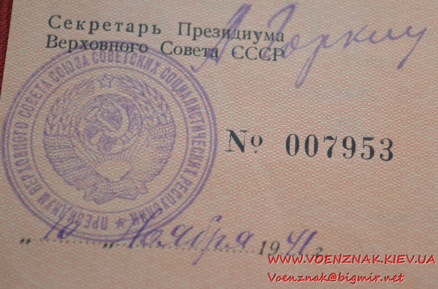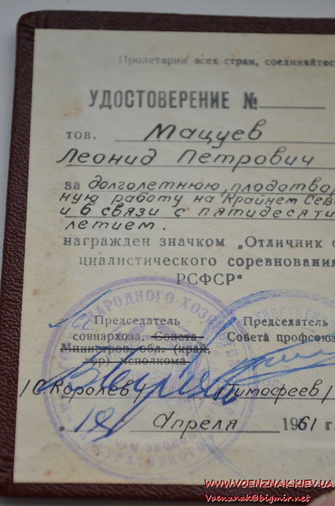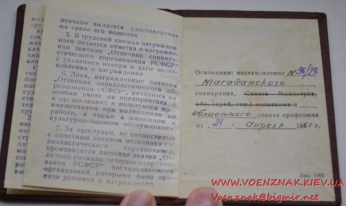 Спецдокумент к медали "За трудовую доблесть" № 7852 + бонус. Состояние люкс