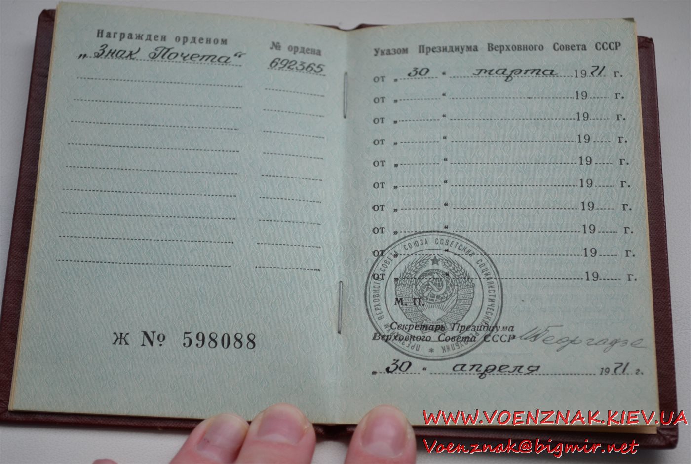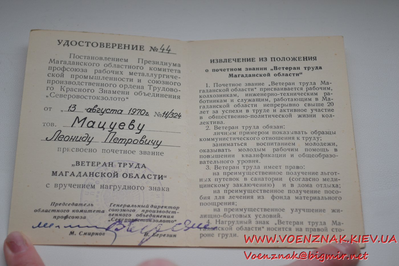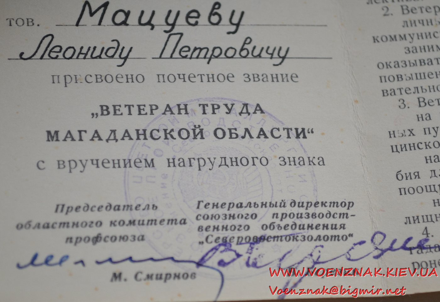 Спецдокумент к медали "За трудовую доблесть" № 7852 + бонус. Состояние люкс