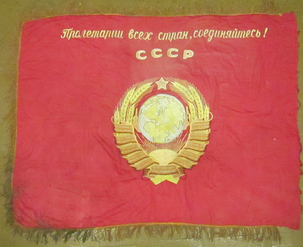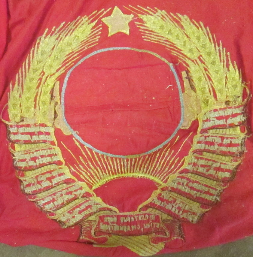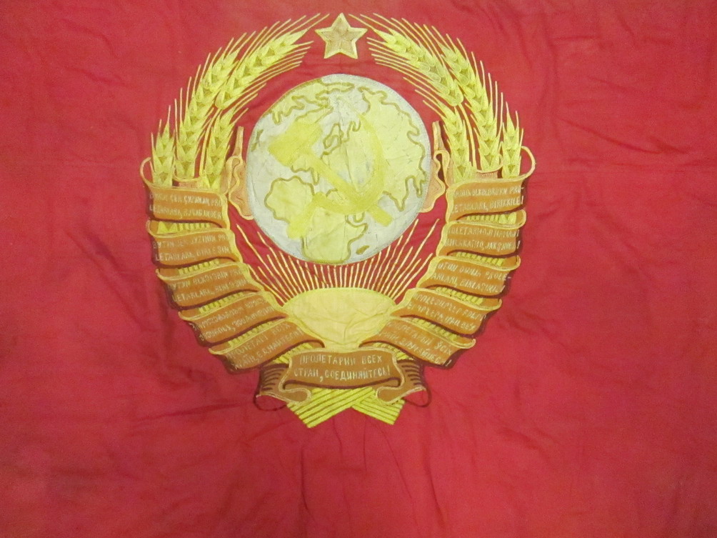 Знамя одностороннее 11 лент . Шитье. Размер 117х160 см. Загрязнеие (См. фото) Предлагайте....