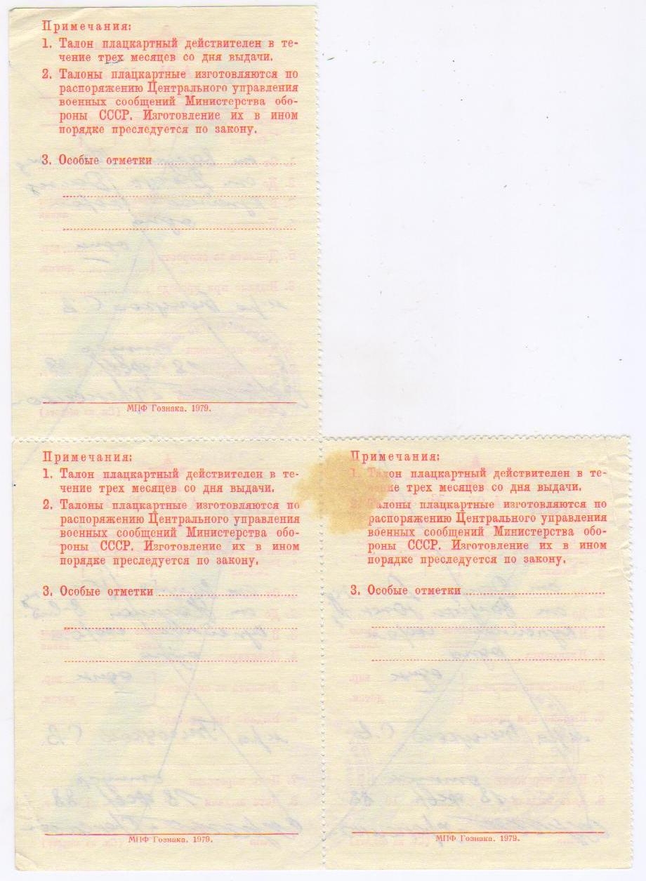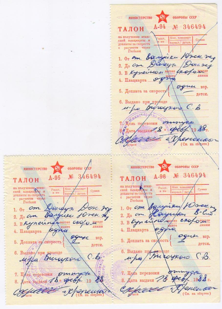 МО СССР ТАЛОН А-94-95-96 на получение воинской плацкарты..
