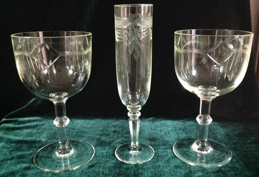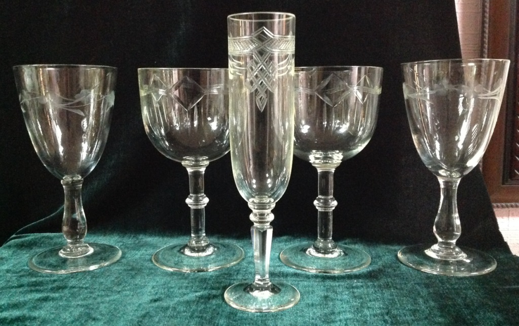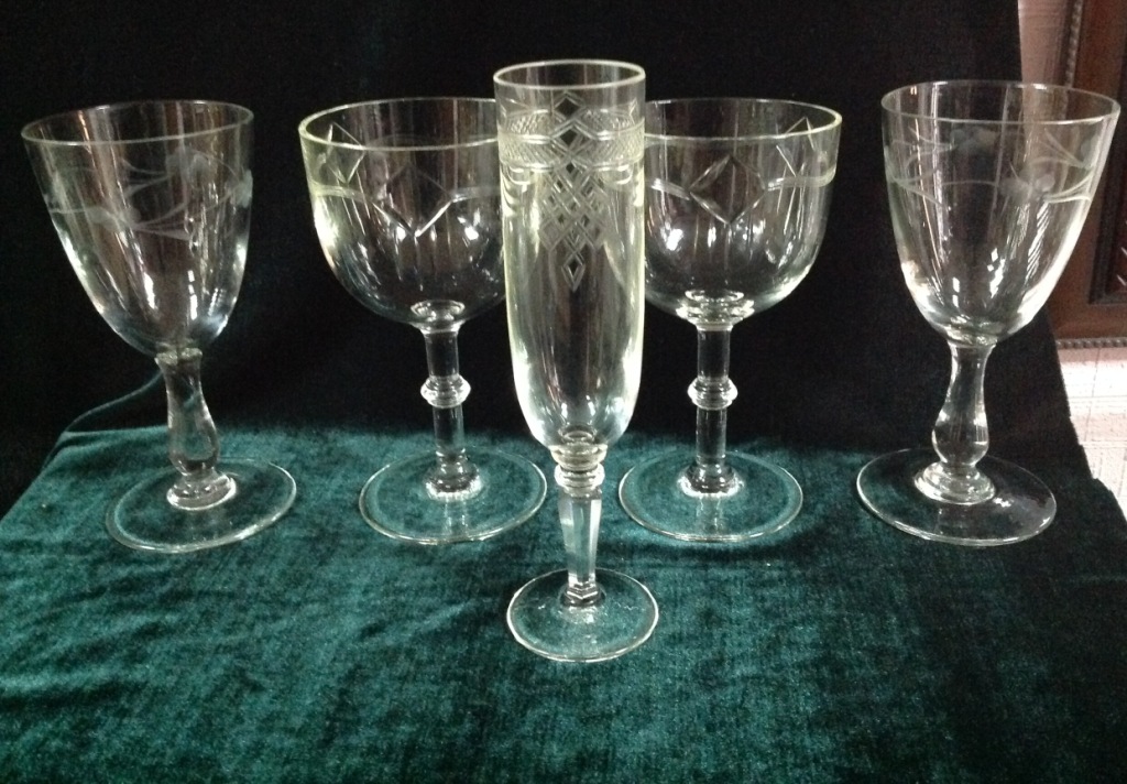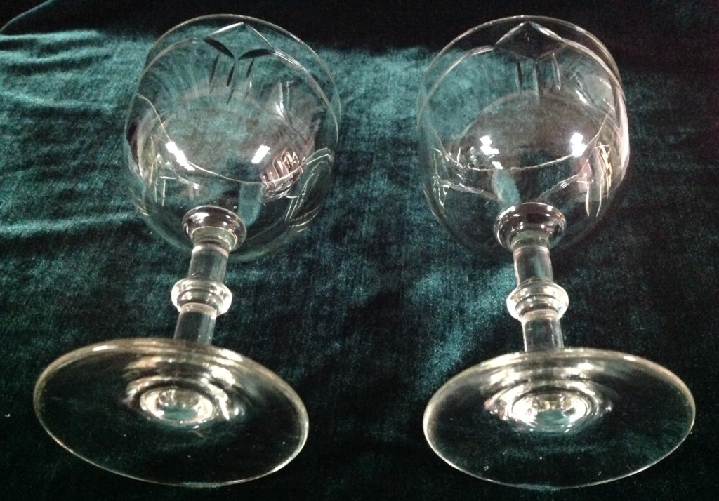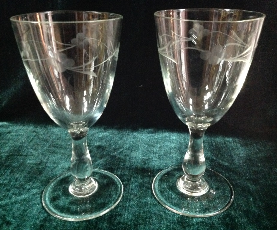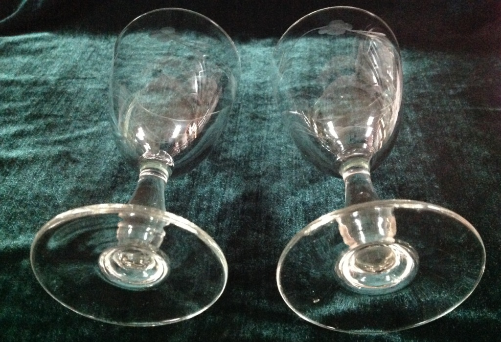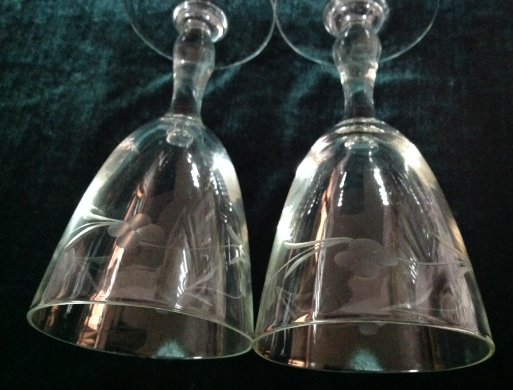 Высота самого высокого 17,7см. Остальные примерно 15 см. Отливают чуть в желтизну...трудно фоткать стекло...Не знаю-получилась ли цветопередача...На одном фужере на основании-запил небольшой-как будто метка.Думаю что то заводское..Пузырьки присутствуют...Предложите по РФ!