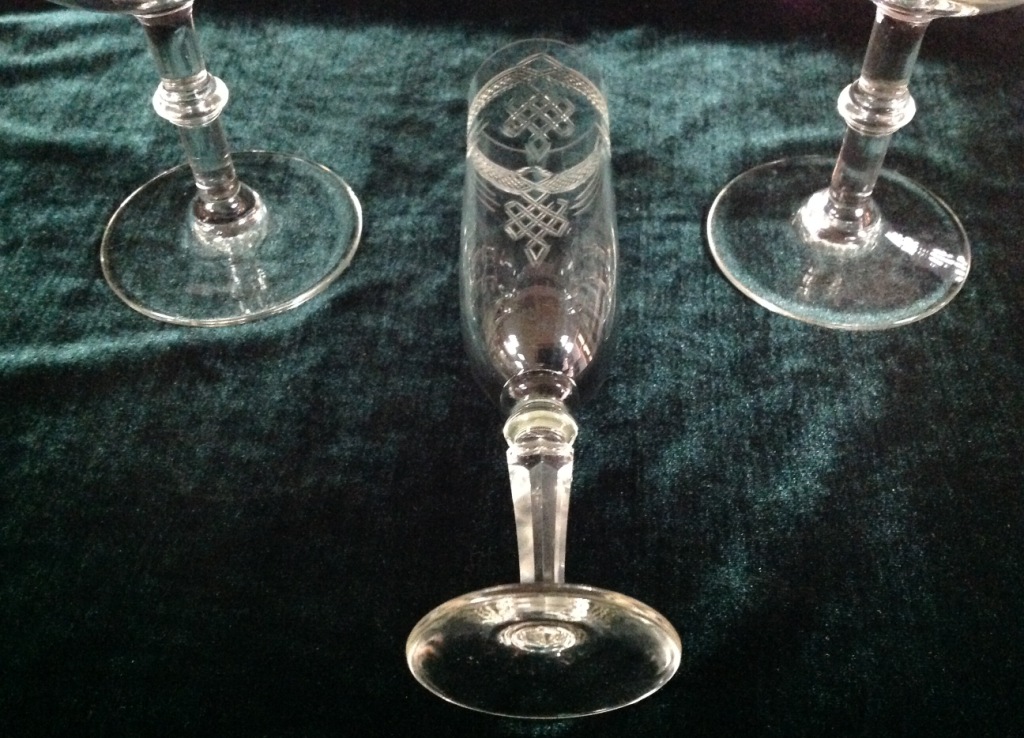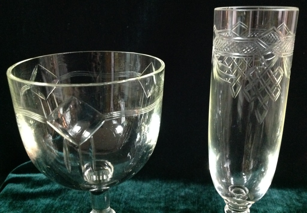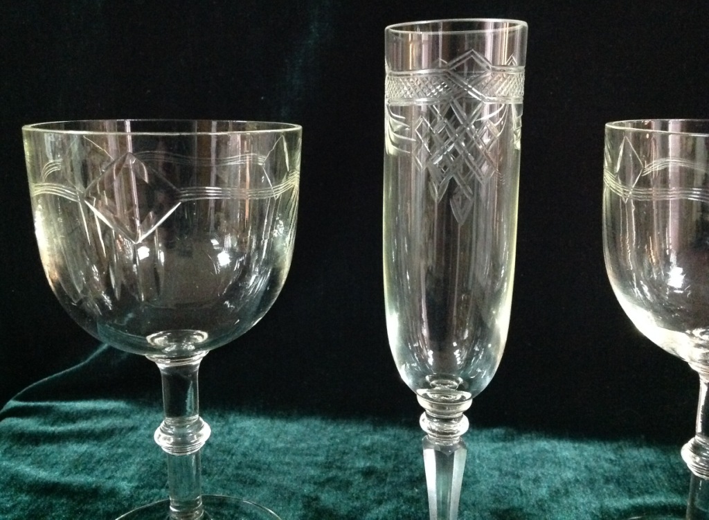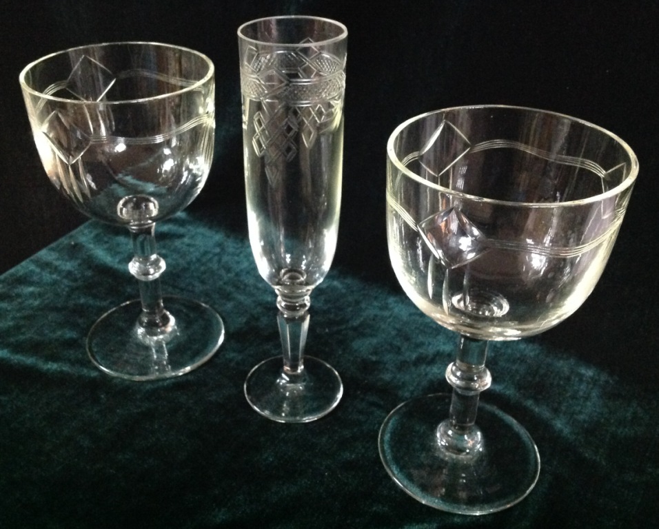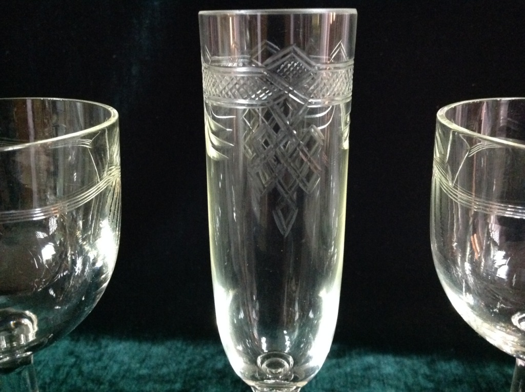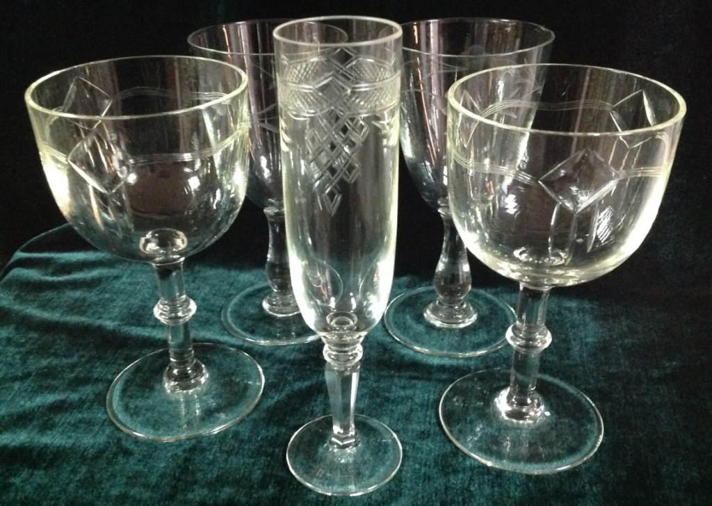 Высота самого высокого 17,7см. Остальные примерно 15 см. Отливают чуть в желтизну...трудно фоткать стекло...Не знаю-получилась ли цветопередача...На одном фужере на основании-запил небольшой-как будто метка.Думаю что то заводское..Пузырьки присутствуют...Предложите по РФ!