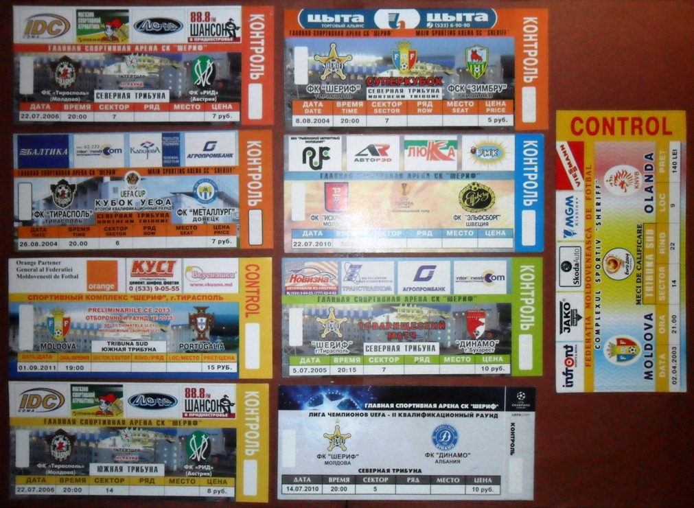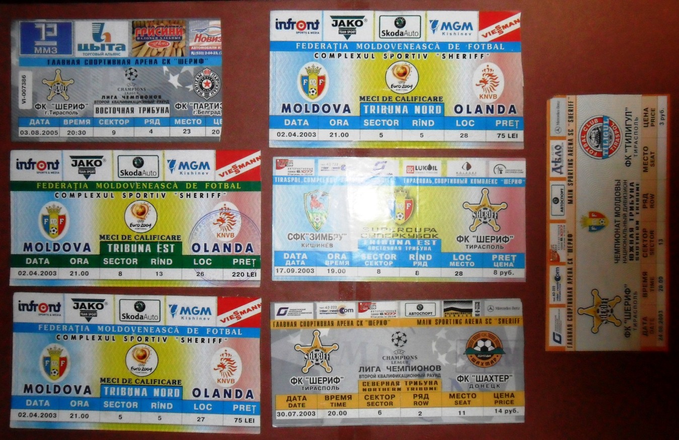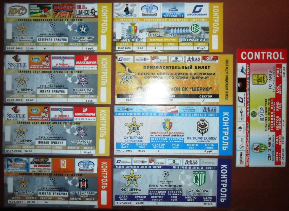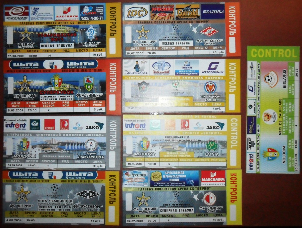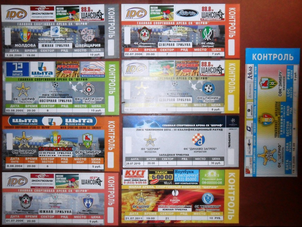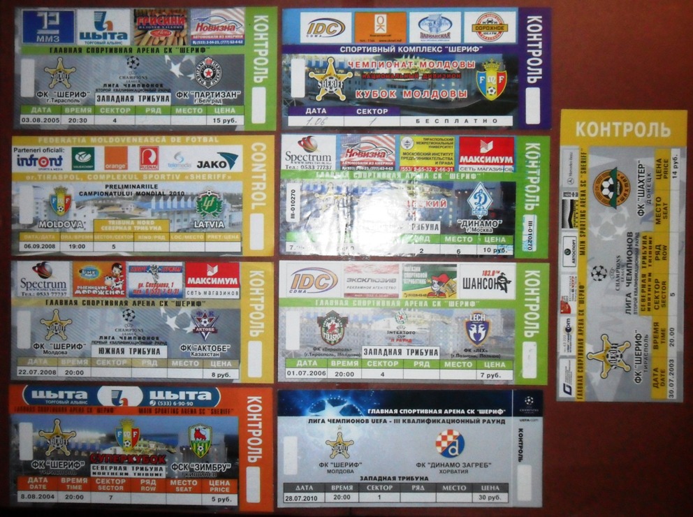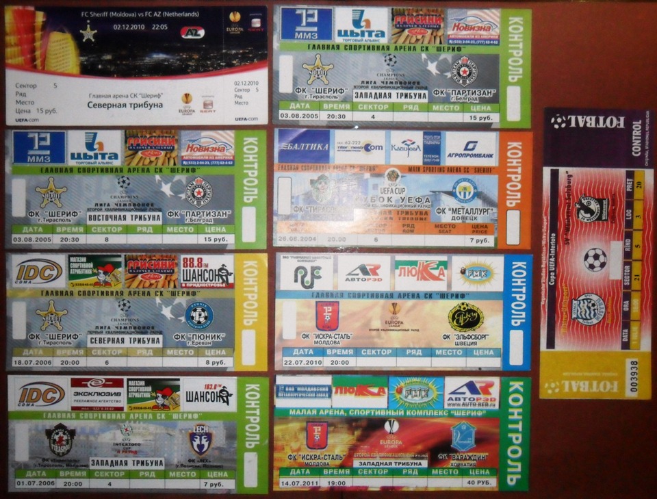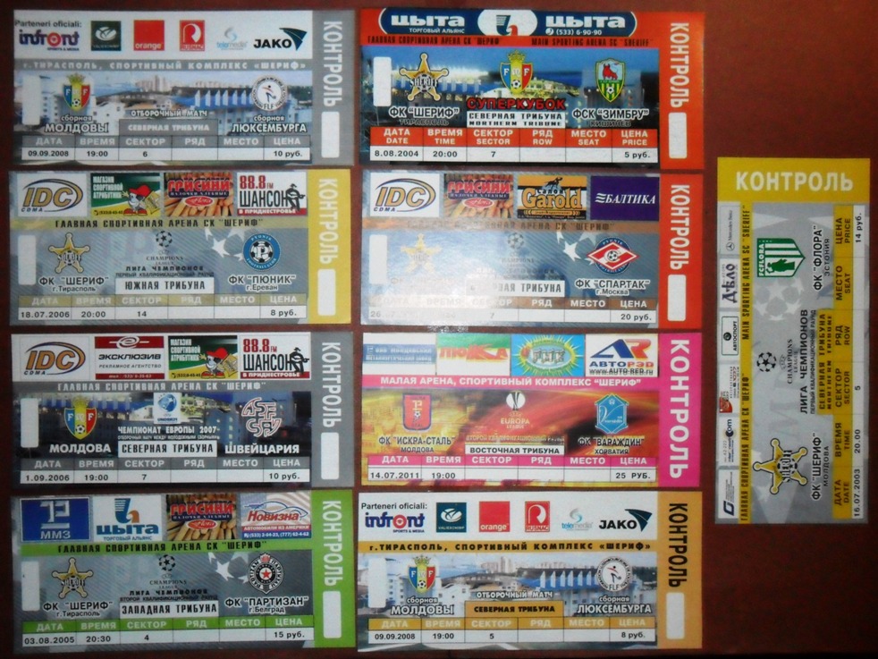 Общее количество - 366 штук + 3 пропуска для автомобилей + 23 билета на концерт. Период - с 1997 г. по 2012 г. Основная масса - местные, Тираспольские, билеты на стадион "Шериф". Хотелось бы продать всё оптом. Пересыл обойдётся где-то рублей 400-450. Предложите, если есть интерес.