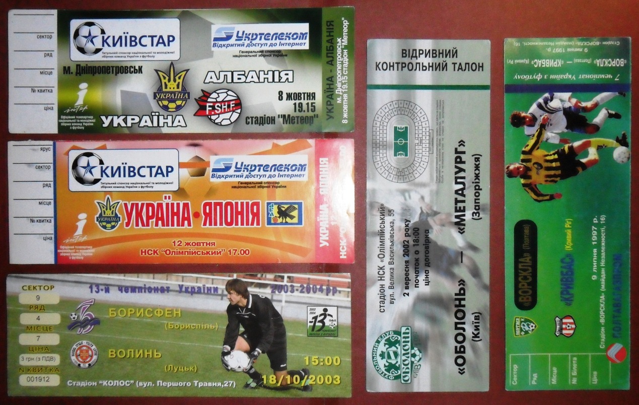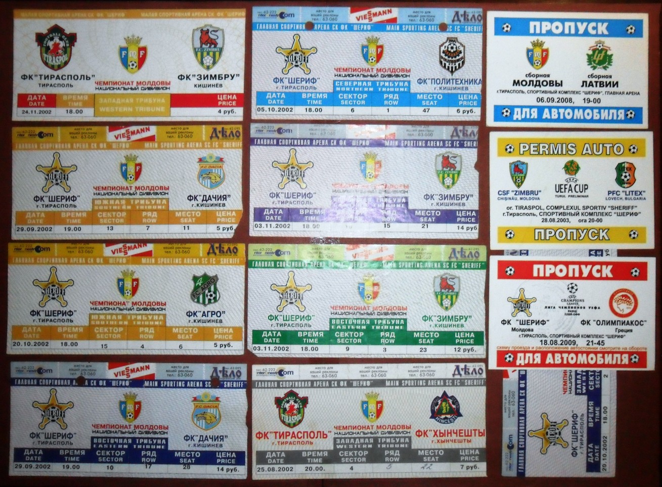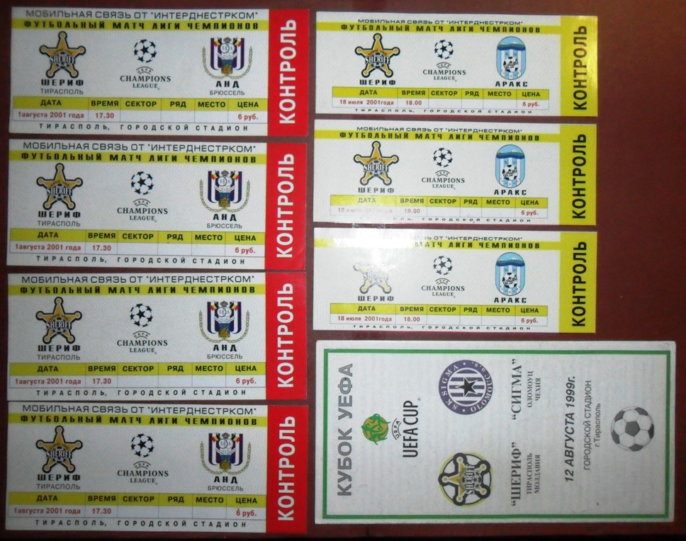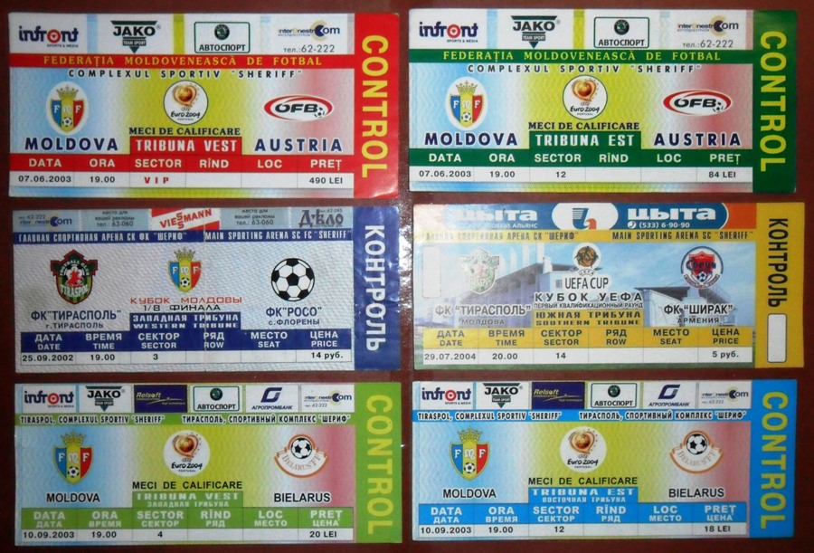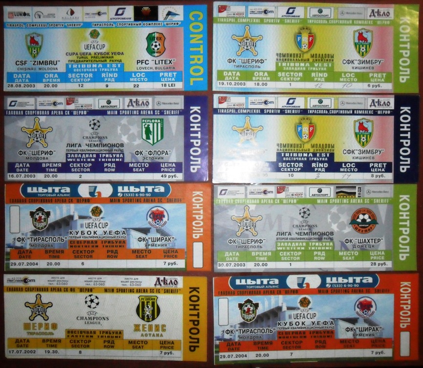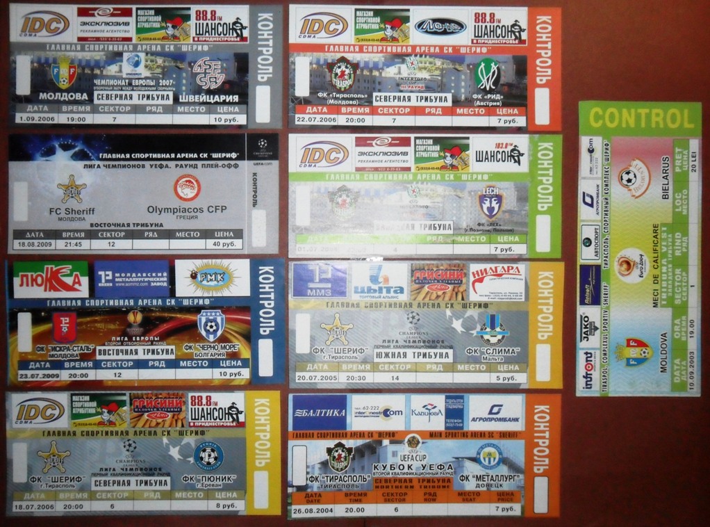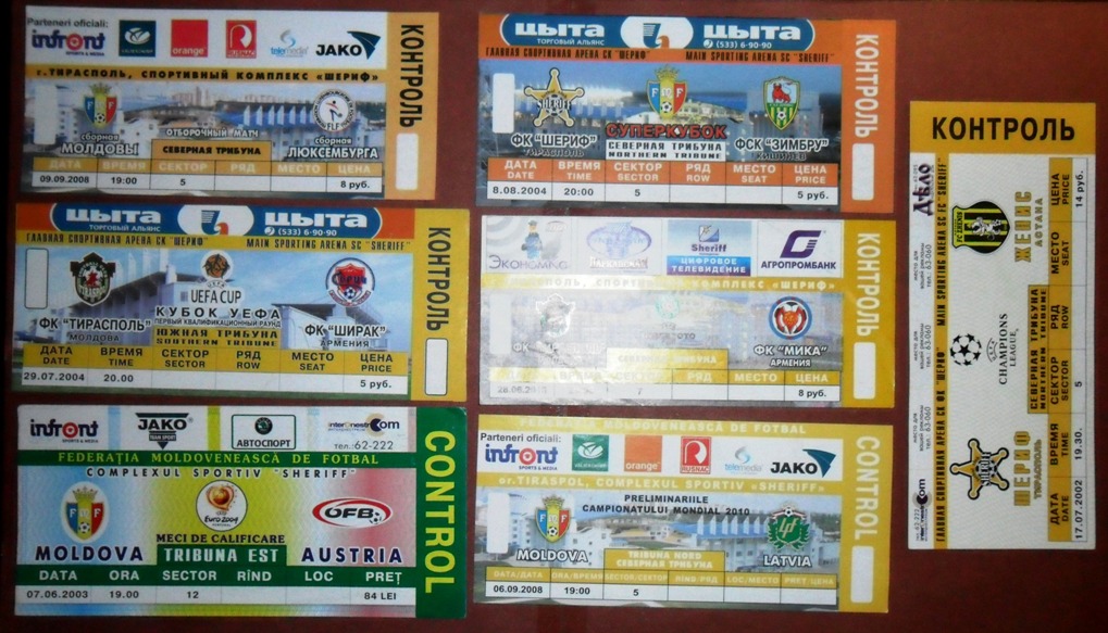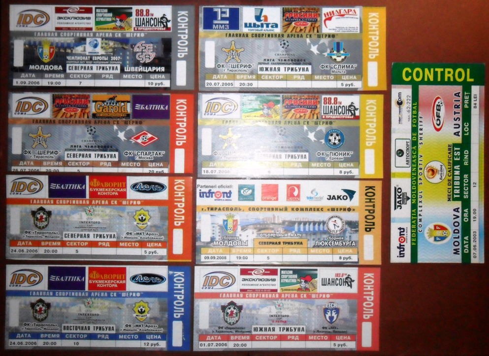 Общее количество - 366 штук + 3 пропуска для автомобилей + 23 билета на концерт. Период - с 1997 г. по 2012 г. Основная масса - местные, Тираспольские, билеты на стадион "Шериф". Хотелось бы продать всё оптом. Пересыл обойдётся где-то рублей 400-450. Предложите, если есть интерес.