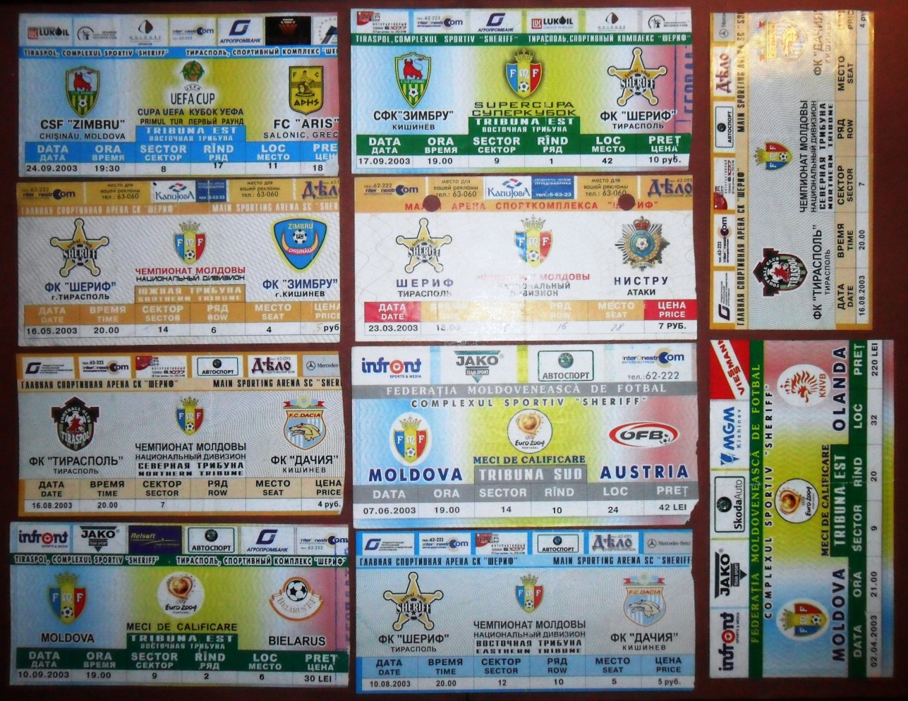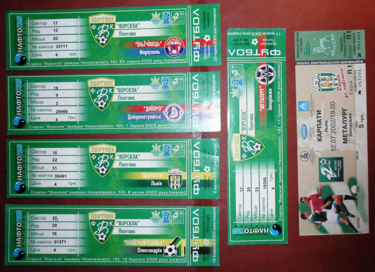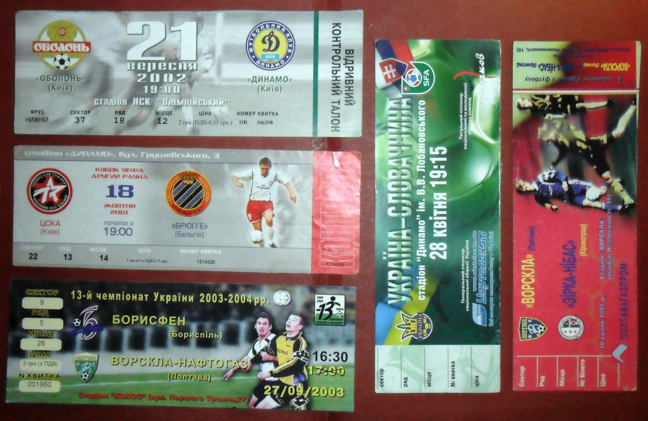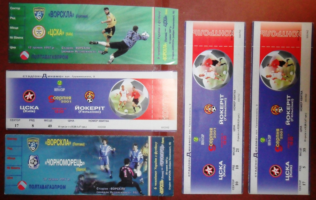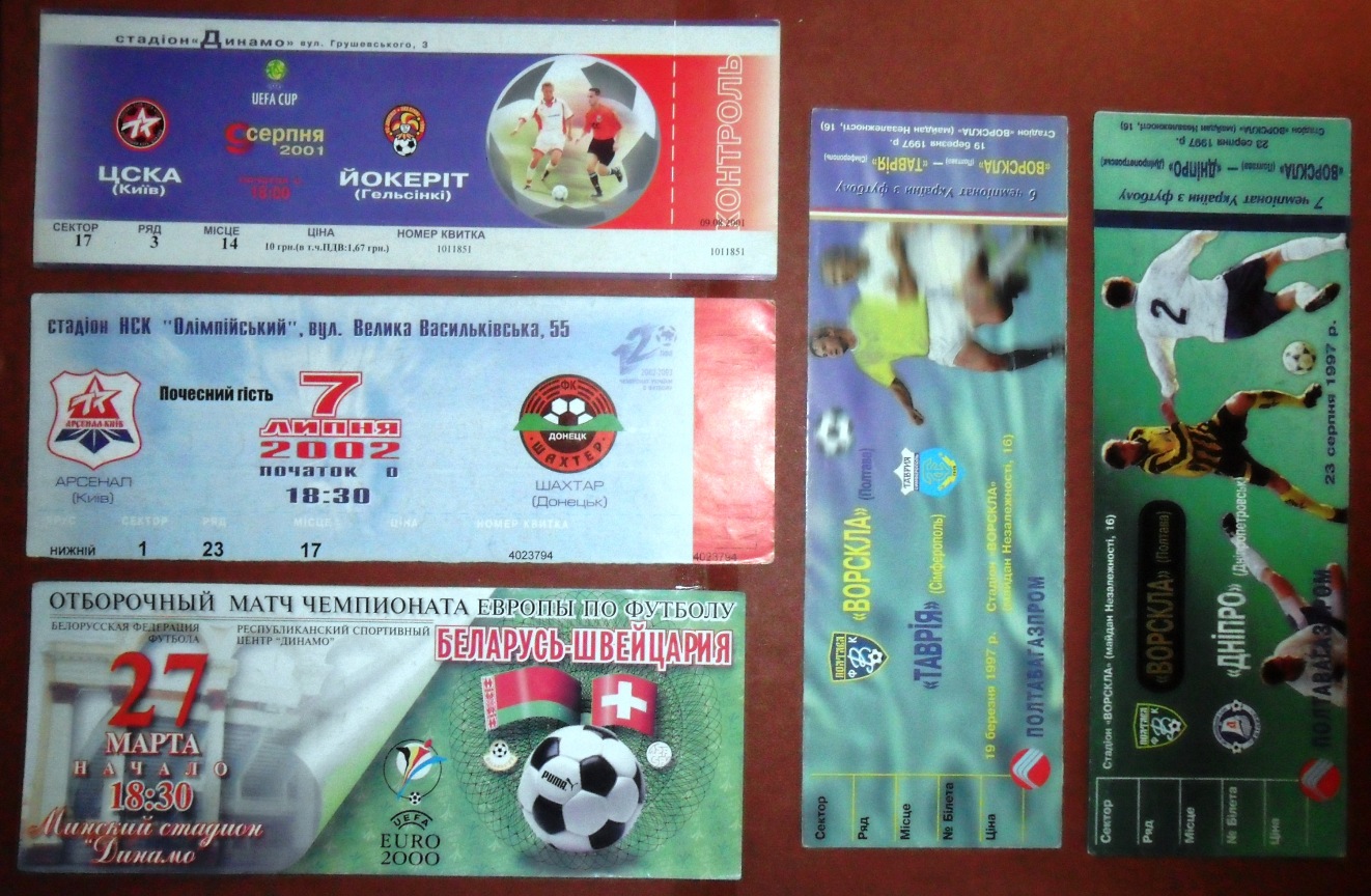 Общее количество - 366 штук + 3 пропуска для автомобилей + 23 билета на концерт. Период - с 1997 г. по 2012 г. Основная масса - местные, Тираспольские, билеты на стадион "Шериф". Хотелось бы продать всё оптом. Пересыл обойдётся где-то рублей 400-450. Предложите, если есть интерес.