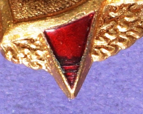 Сколов и чешуй нет, но на правом нижнем луче в углу трещинки, вследствии чего имеются потемнения.