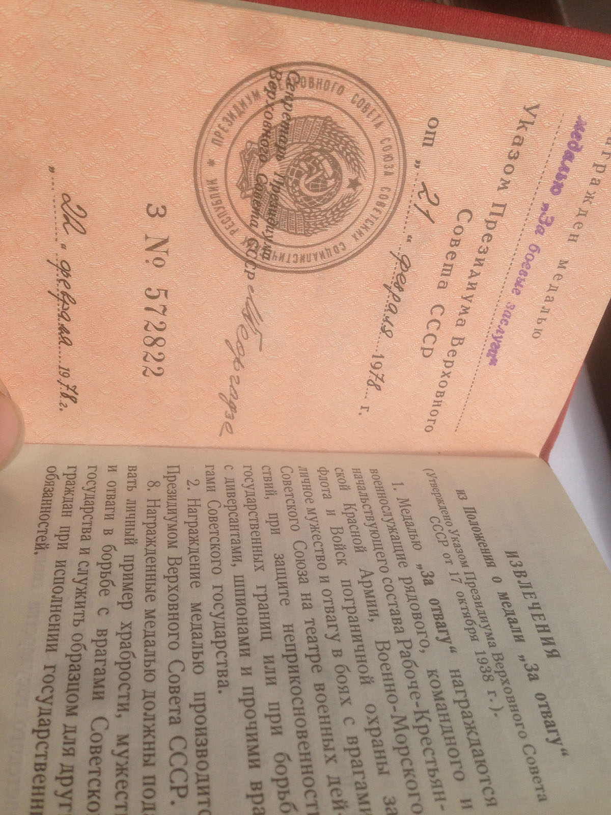 !972 год. Предположительно - за тушение торфяных пожаров на востоке Московской области (пришел оттуда).