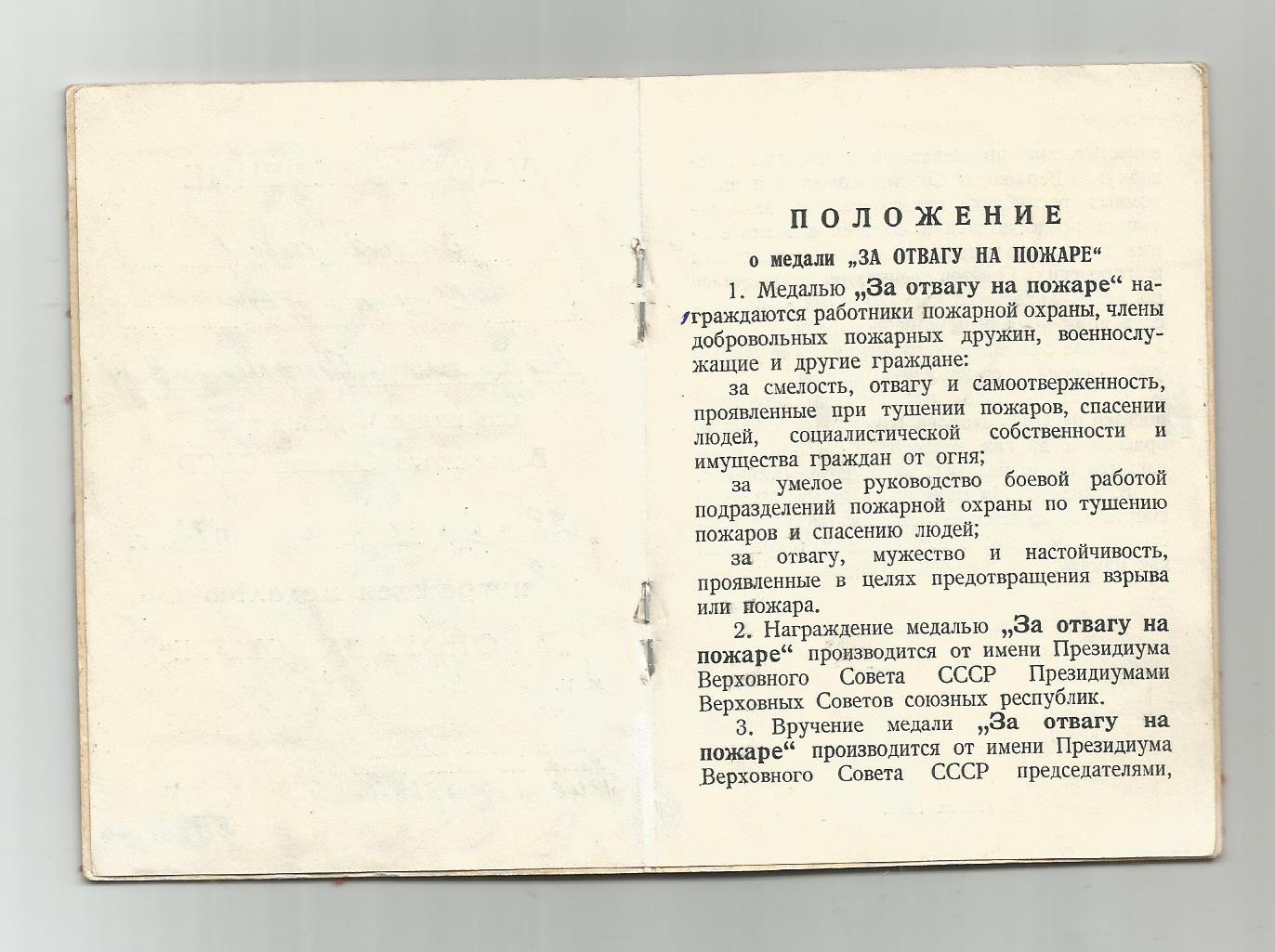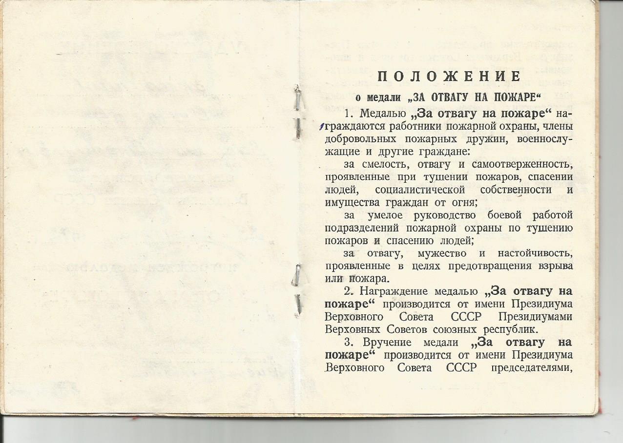 Документ к медали " За отвагу на пожаре" - на капитана ВДВ.
