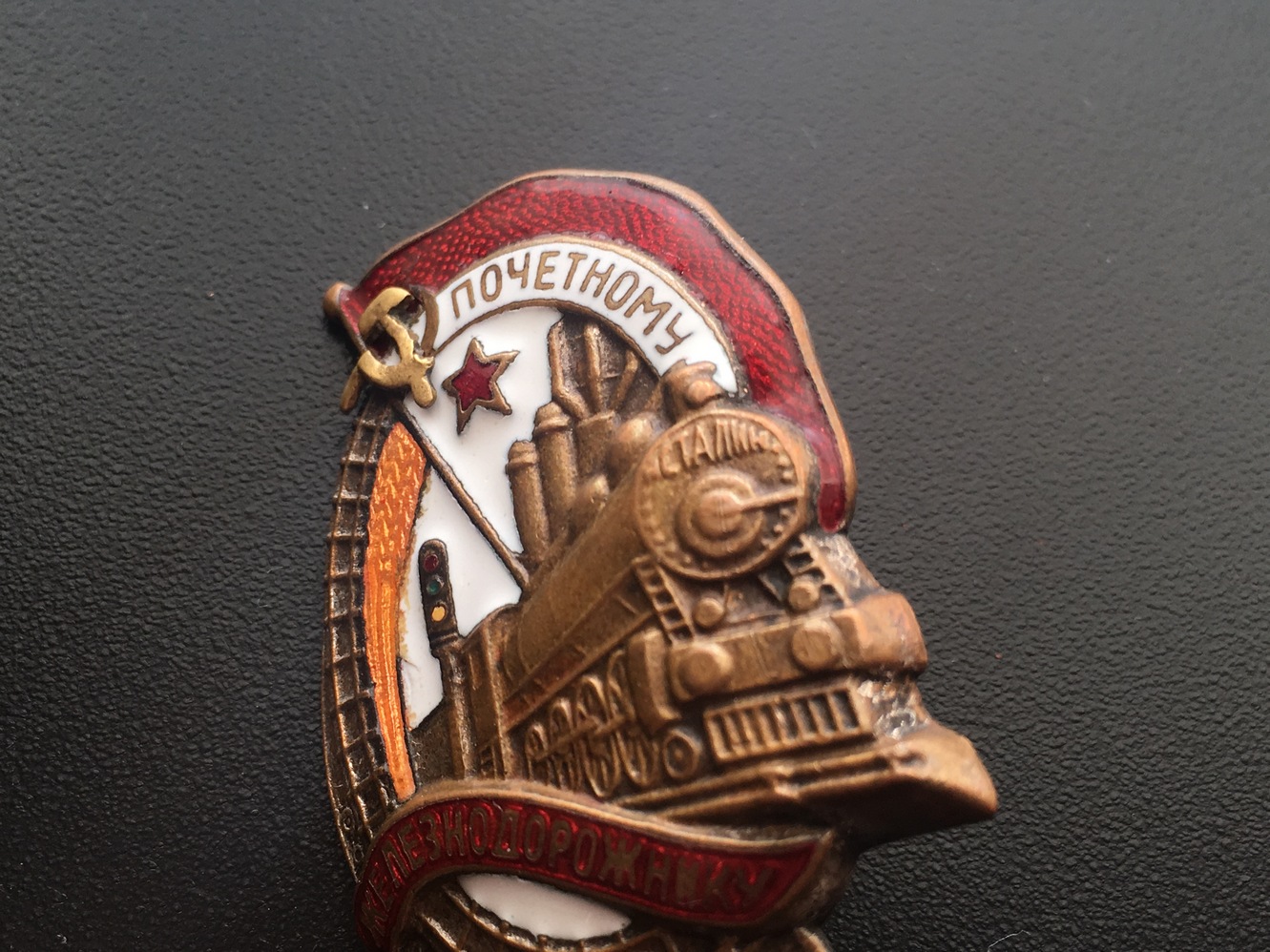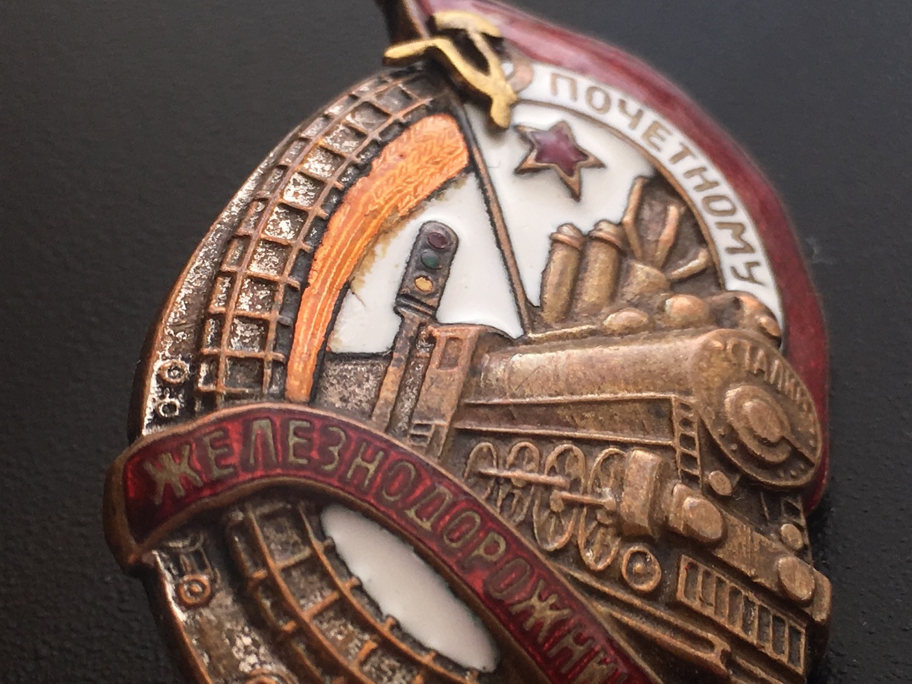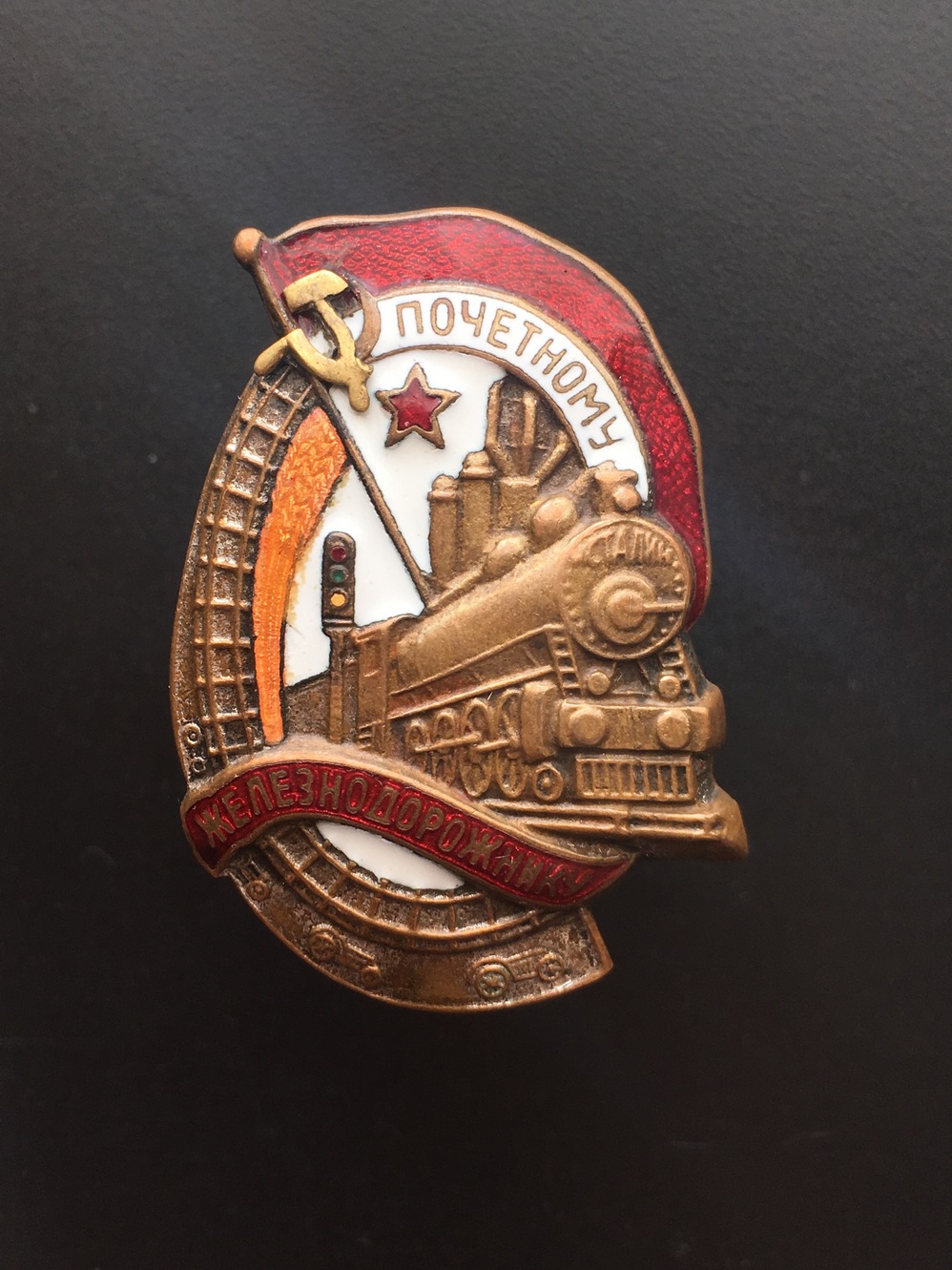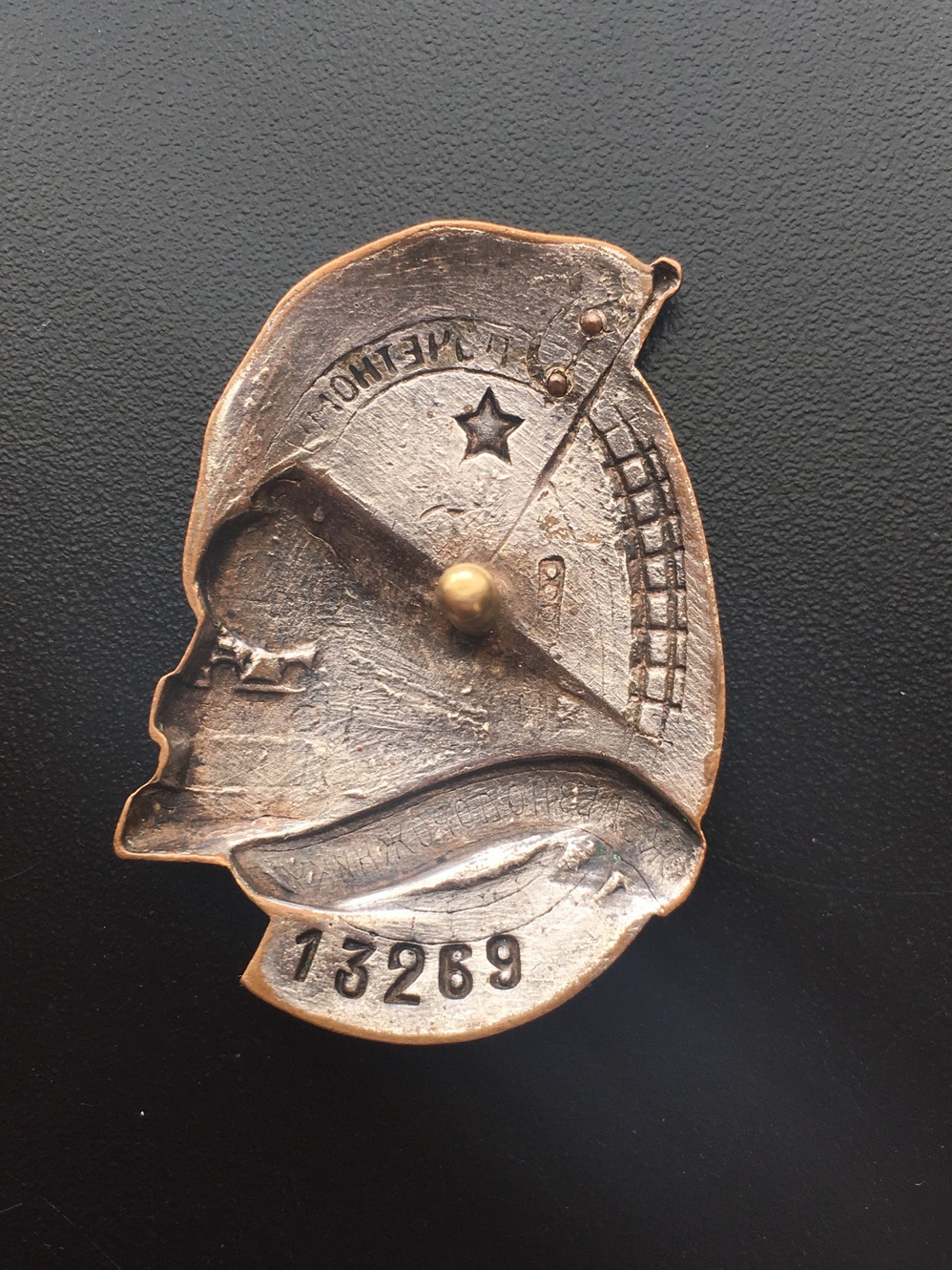 Знак Почетному железнодорожнику №13тис. Состояние: Отломана часть серпа, слева от фонаря есть поверхностная чешуя белой эмали, на фото показал. Закрутка отсутствует. Больше дефектов не обнаружил. Переходной знак 1941 года. С МПЦ сориентируюсь по ходу. Буду благодарен за предложения. Нахождение: Литва.