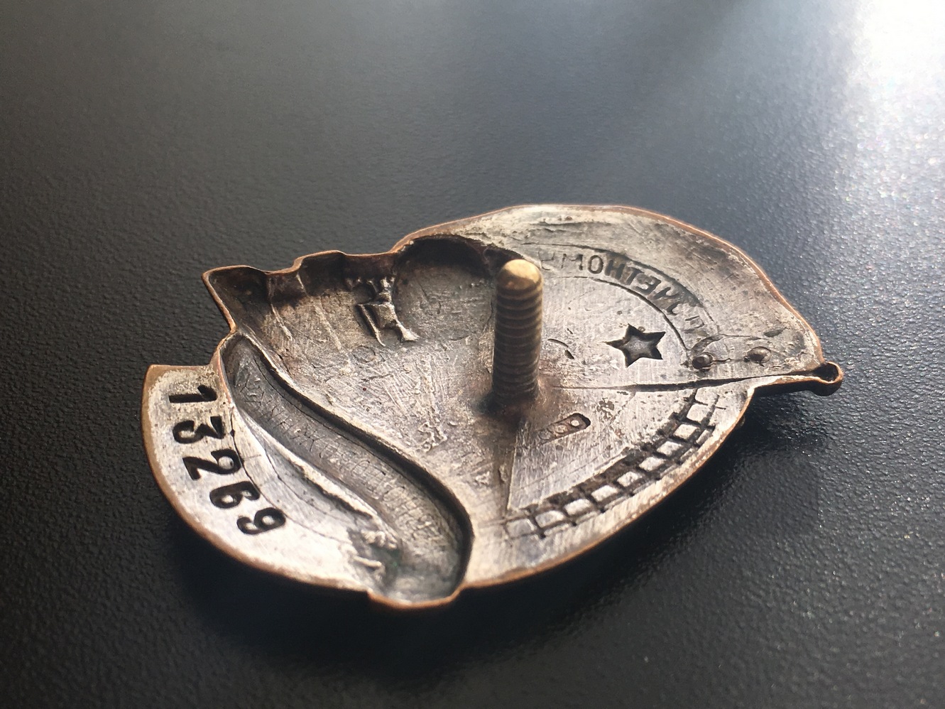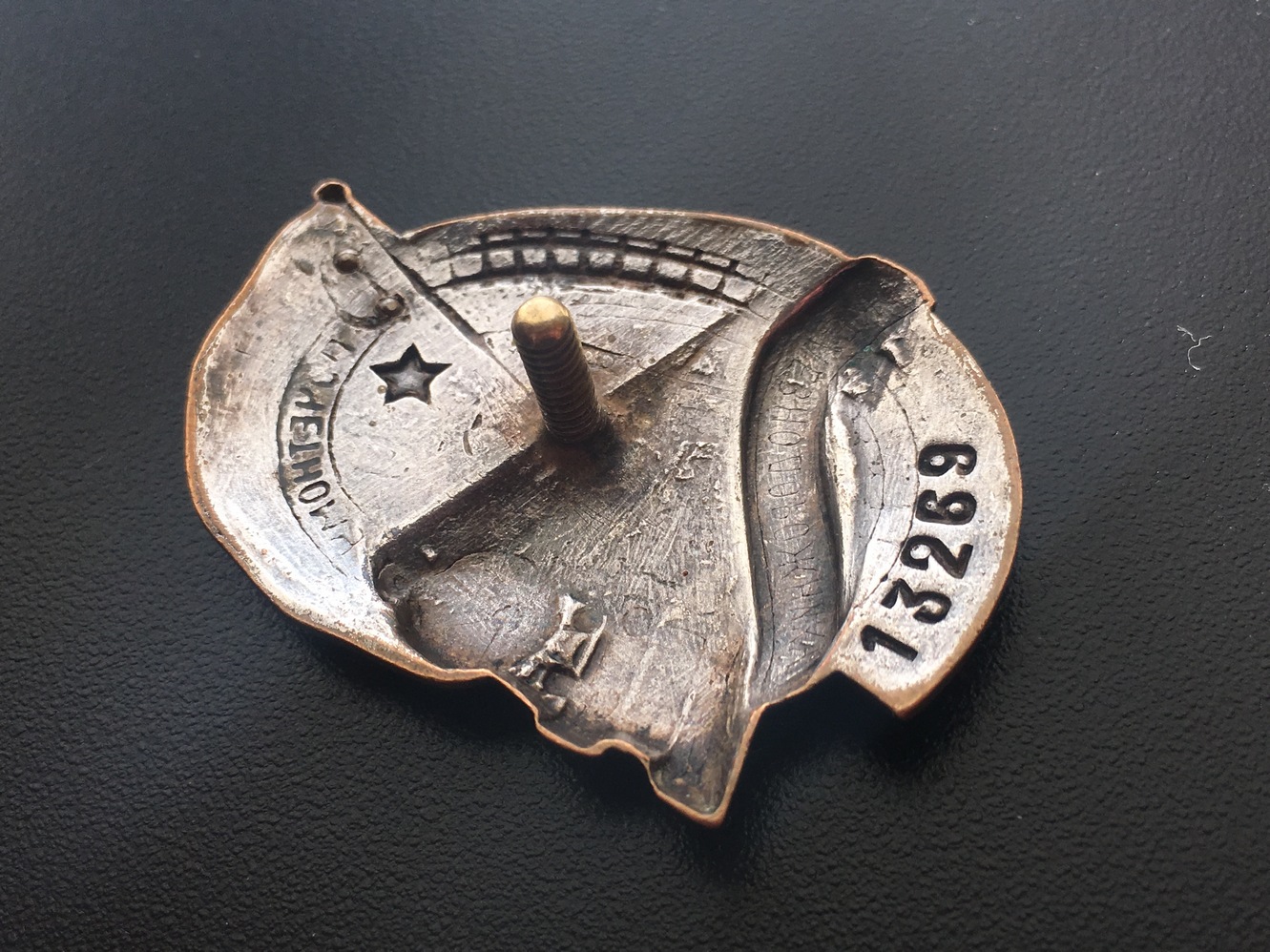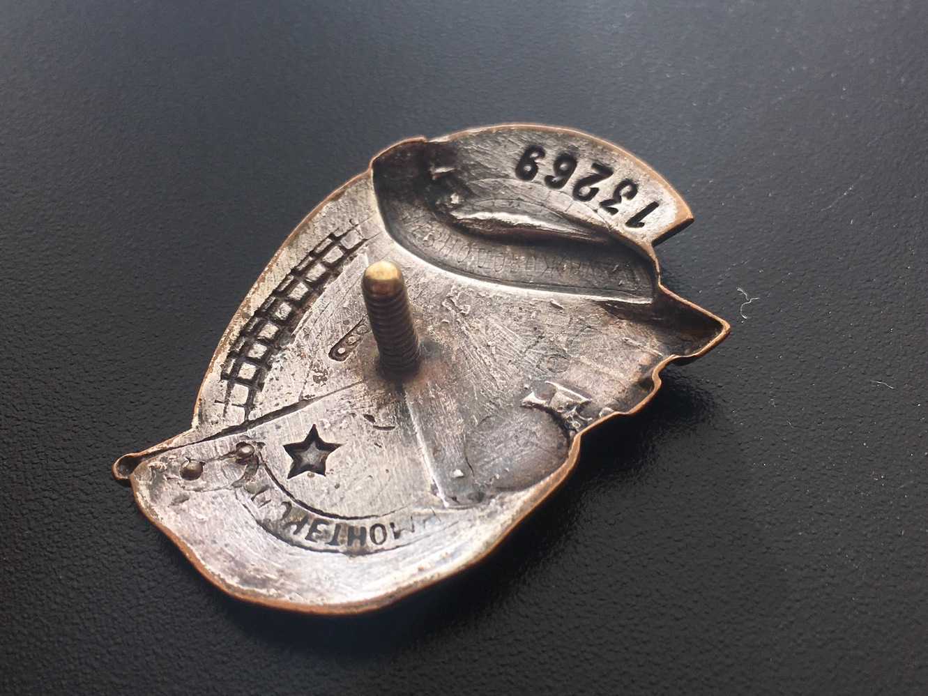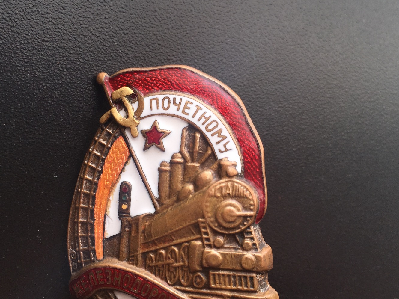Знак Почетному железнодорожнику №13тис. Состояние: Отломана часть серпа, слева от фонаря есть поверхностная чешуя белой эмали, на фото показал. Закрутка отсутствует. Больше дефектов не обнаружил. Переходной знак 1941 года. С МПЦ сориентируюсь по ходу. Буду благодарен за предложения. Нахождение: Литва.