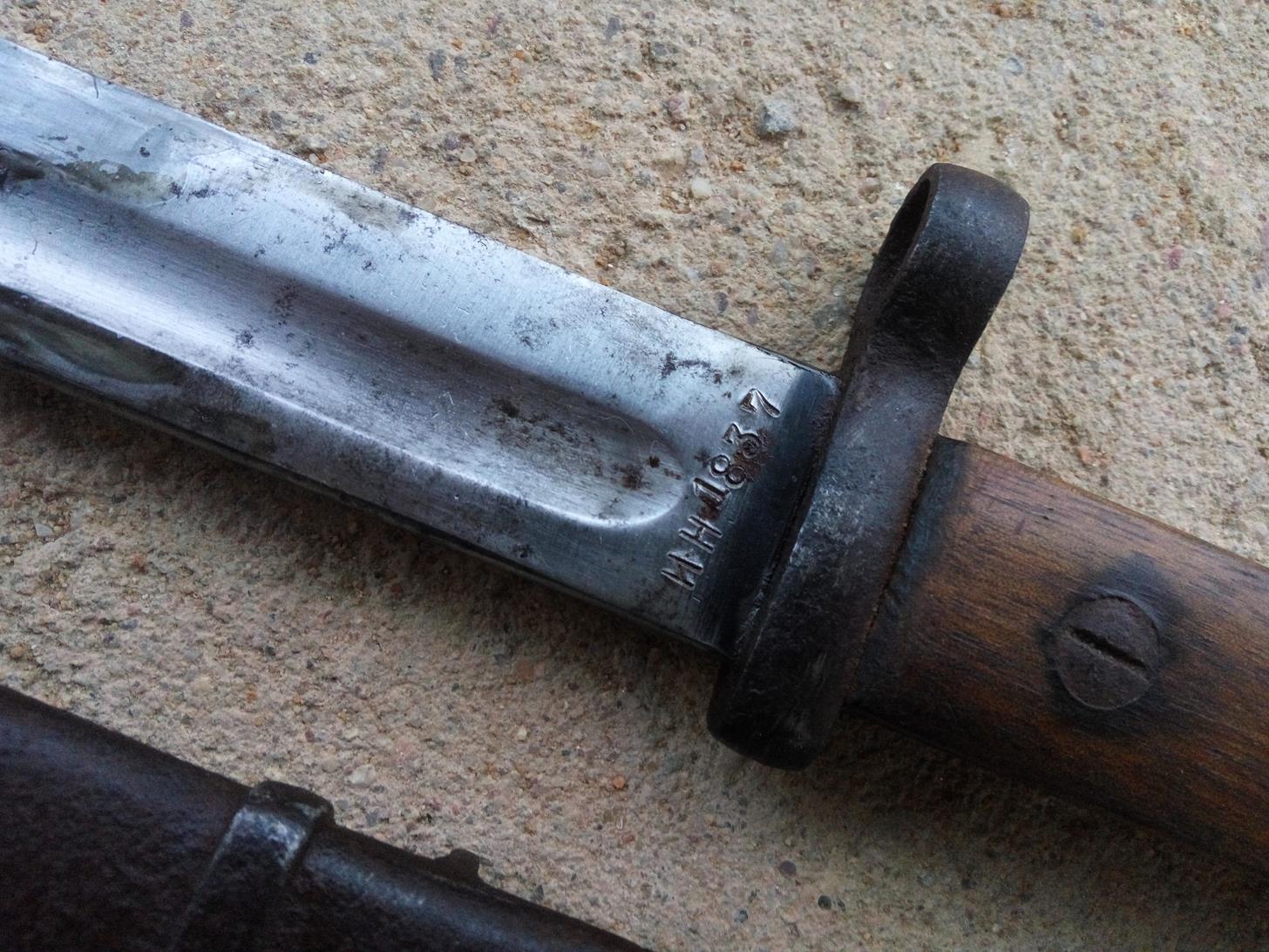 Сохран: сам штык в отличнейшем состоянии. поверхностная ржа на гарде и рукояти без поражения металла.