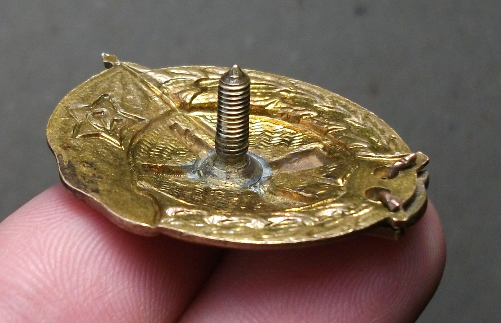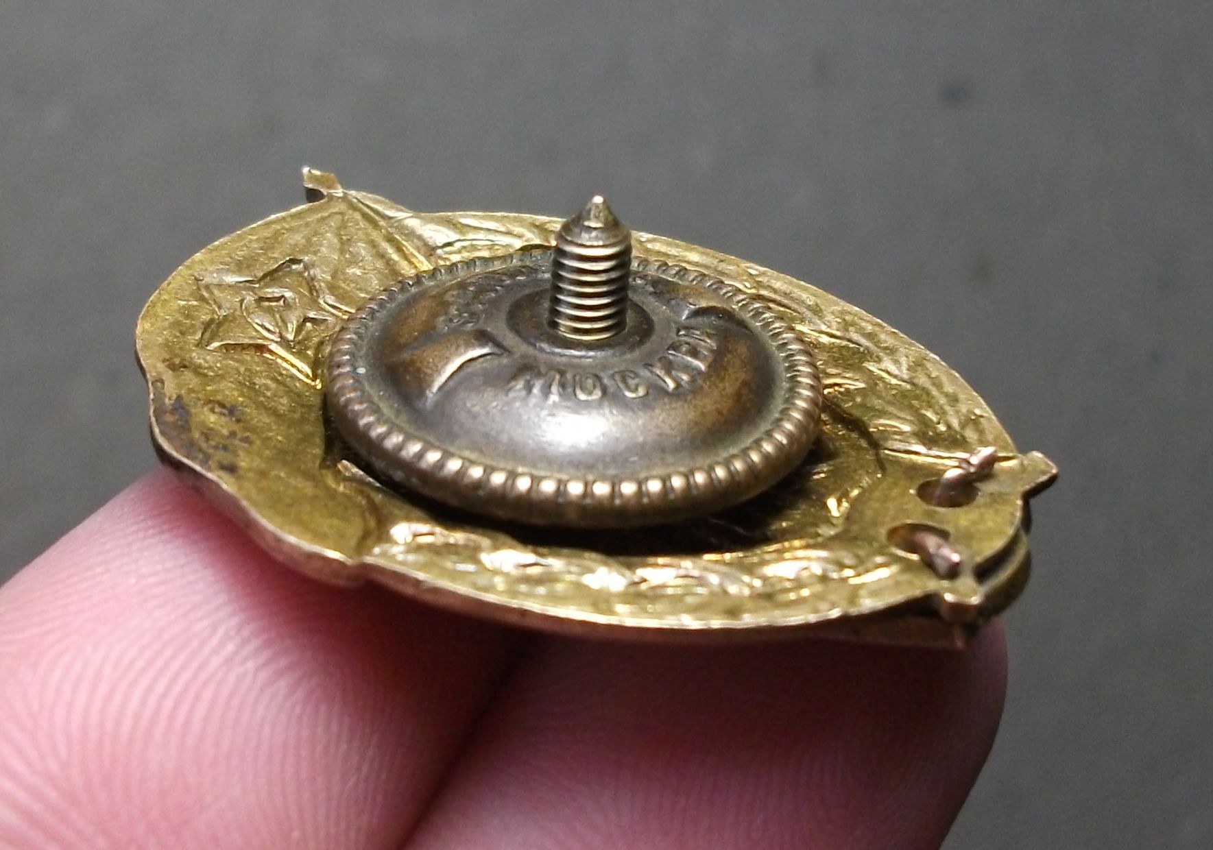 Знак в сохране,мизерная чешуечка на верху флага, видна только в ув.стекло, винтовая пара в отличном состоянии