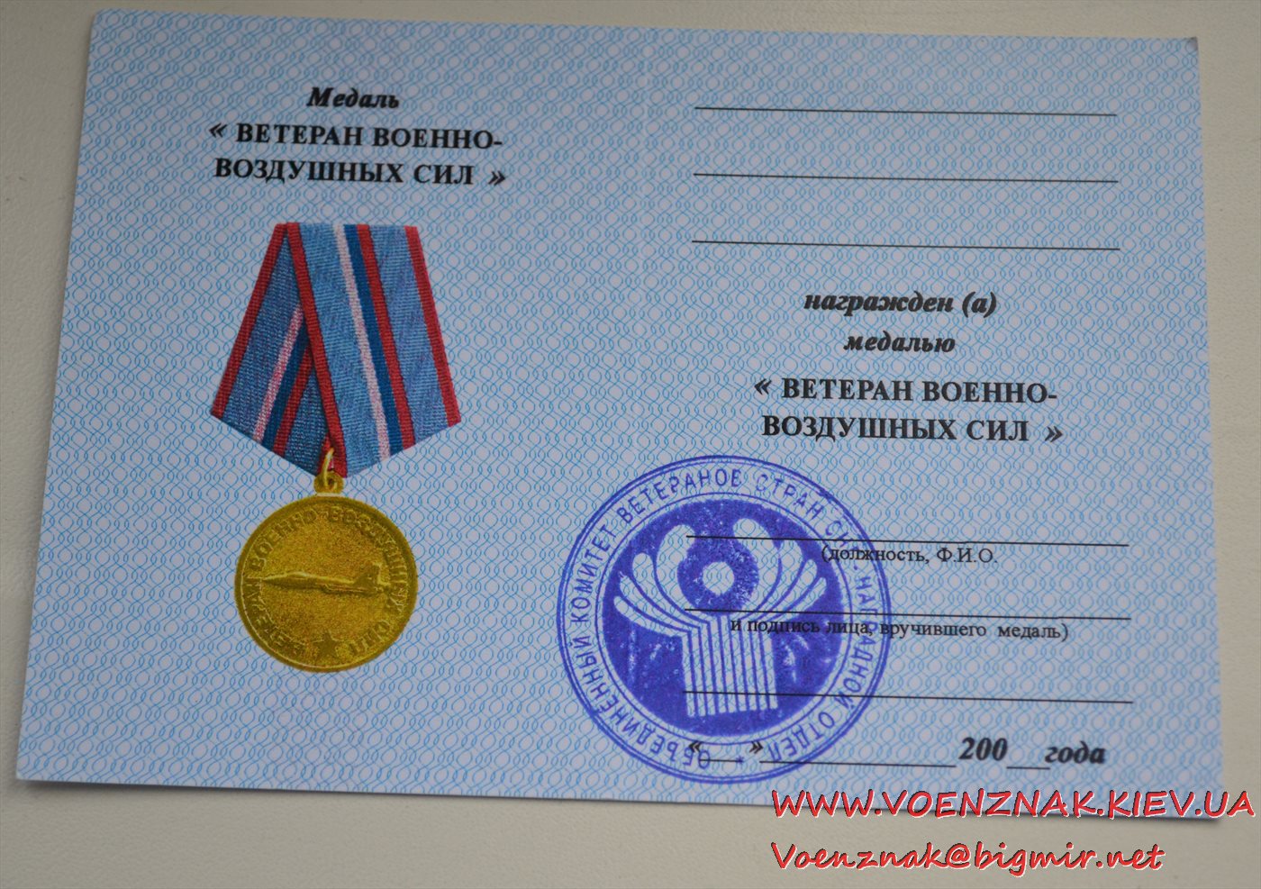 Незаполненное удостоверение "Ветеран военно-воздушных сил" (в наличии 3 шт)