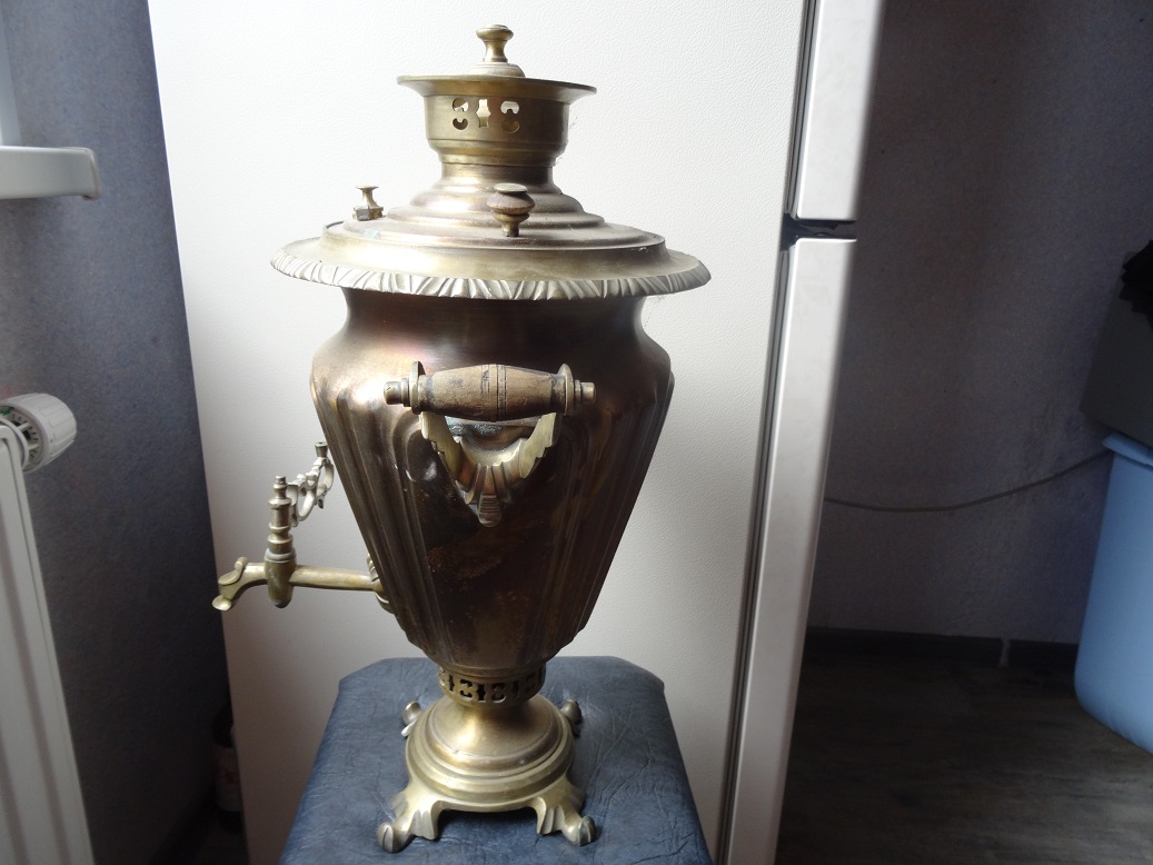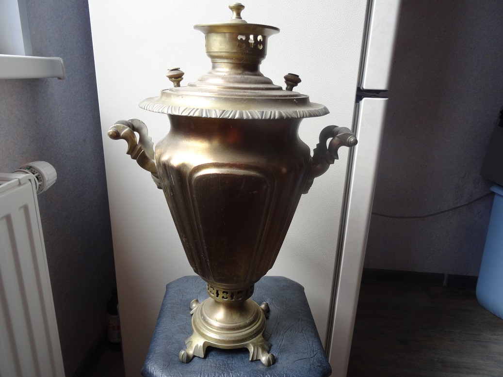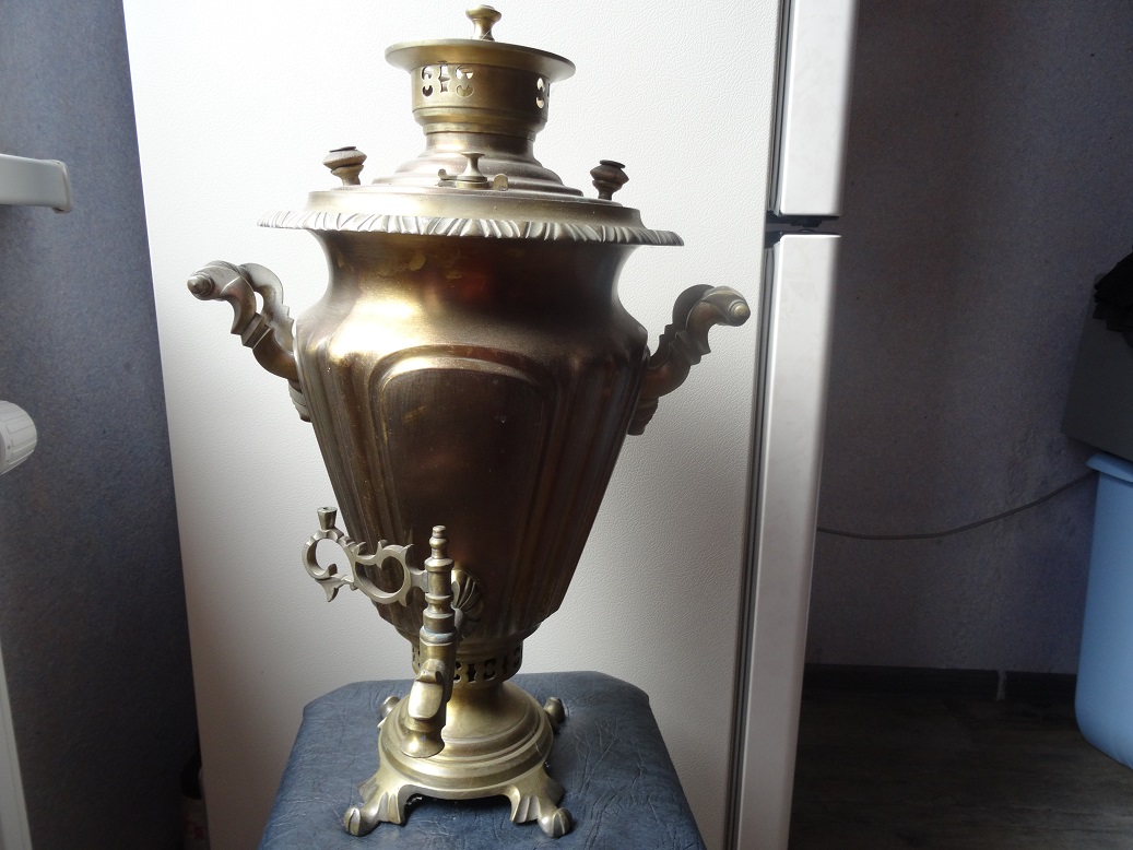 В продаже самовар, в форме рюмки.Клеймо " Самоварная фабрика, 1-ой кооперативной Артели, дост.диплом 1 ой степени. Высота 47 см. Не течет,не паяный, в рабочем состоянии.