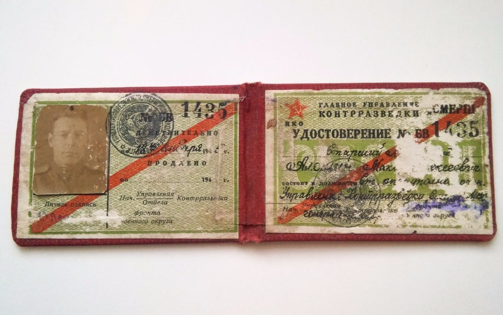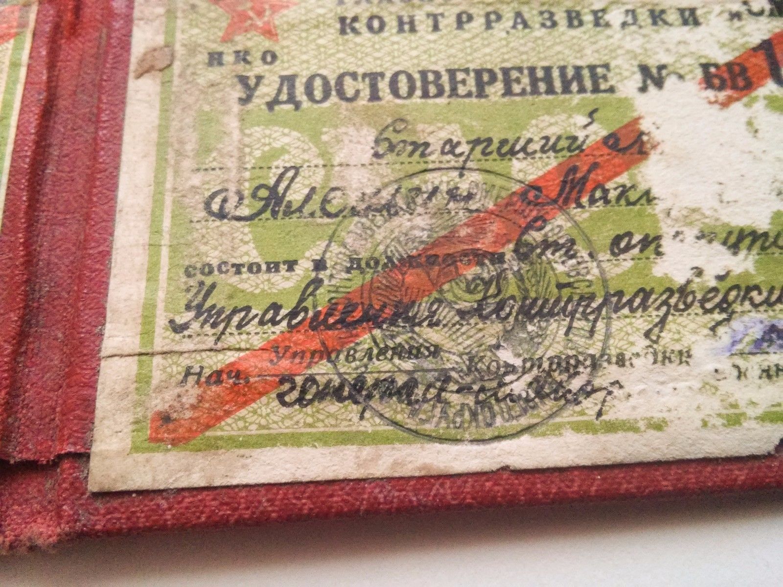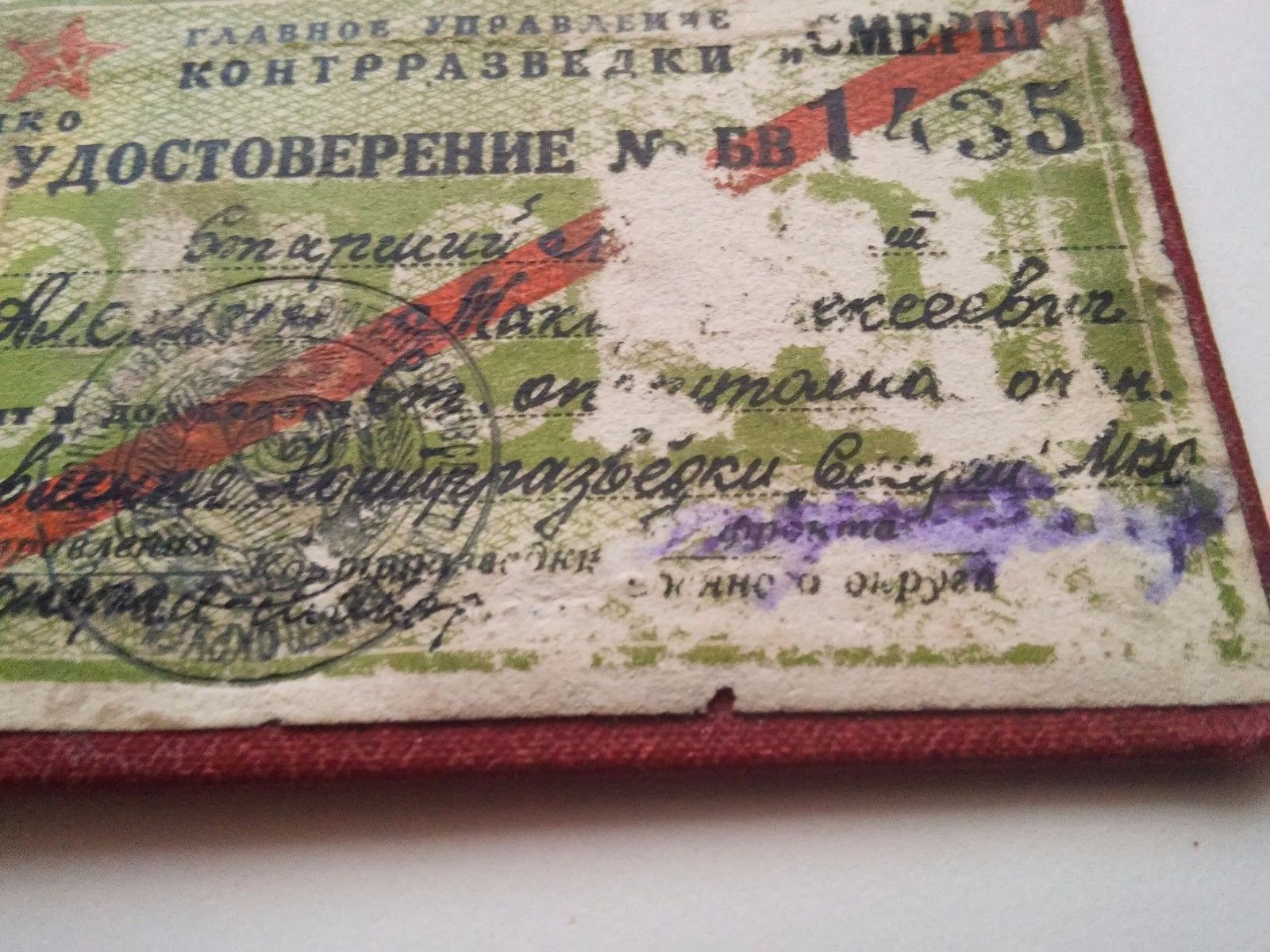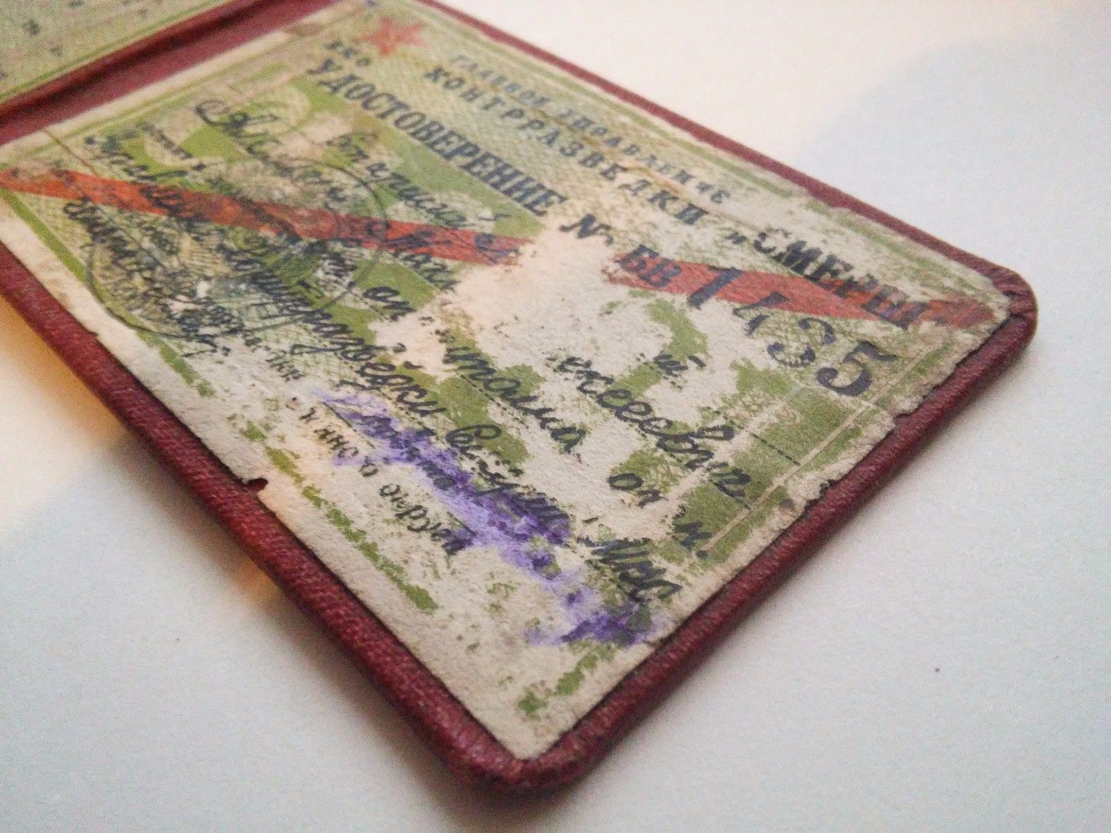 Документ Удостоверение контрразведки СМЕРШ. Состояние: есть внутренние повреждения бумаги, изза этого часть текста и подписей потеряны к сожалению. С МПЦ по ходу. Буду благодарен за предложения. Доставка по миру: 5дол. Просьба ставки также делать в дол.