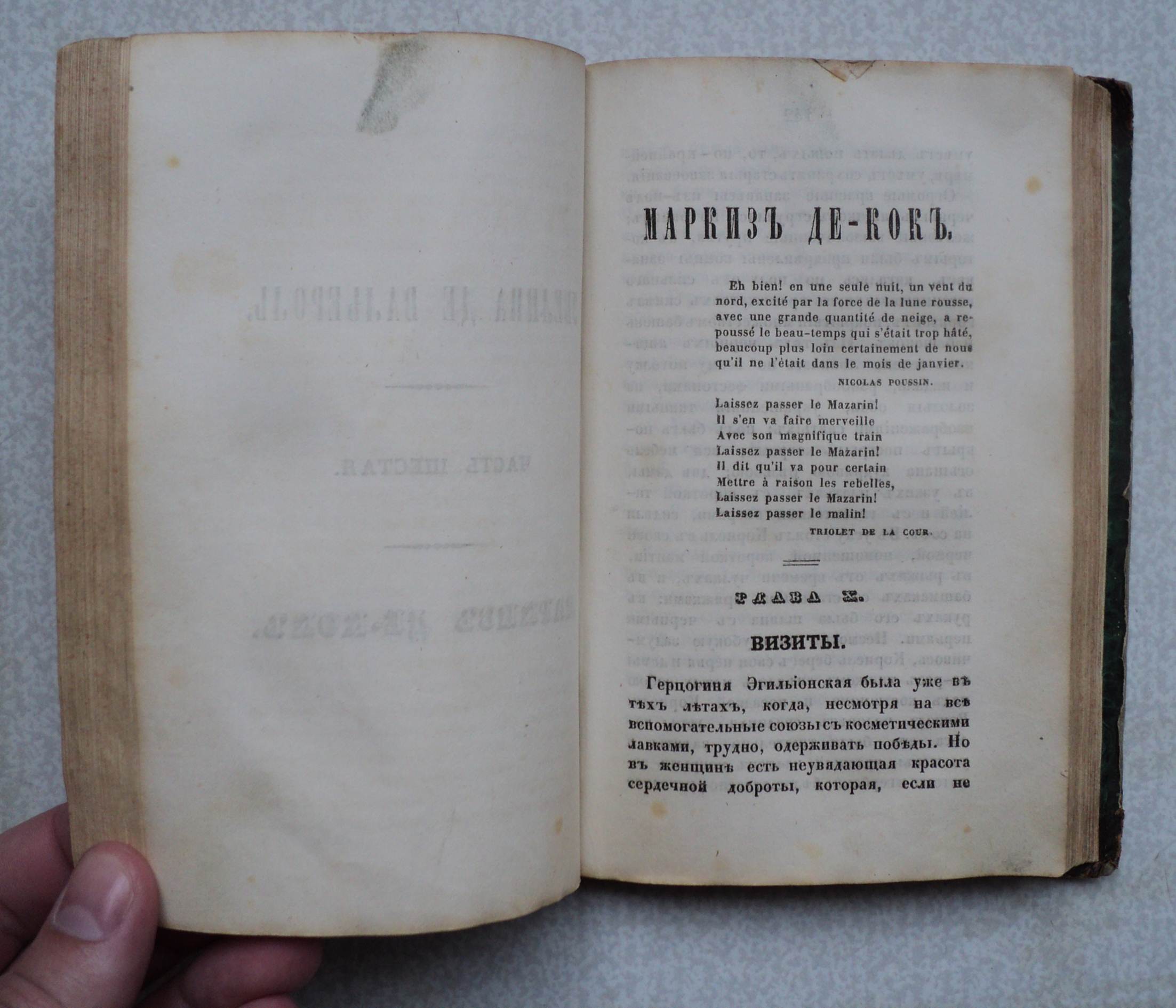 Верхняя крышка переплета отделена от блока.