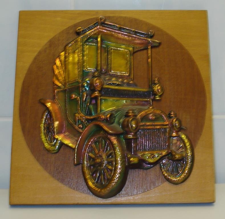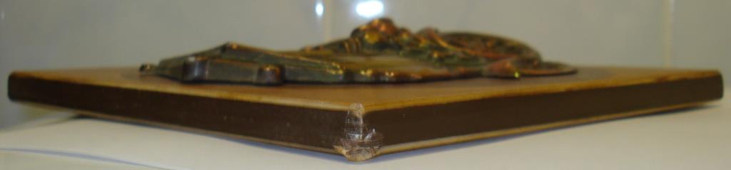 Металлический рельефный барельеф на деревянной основе.